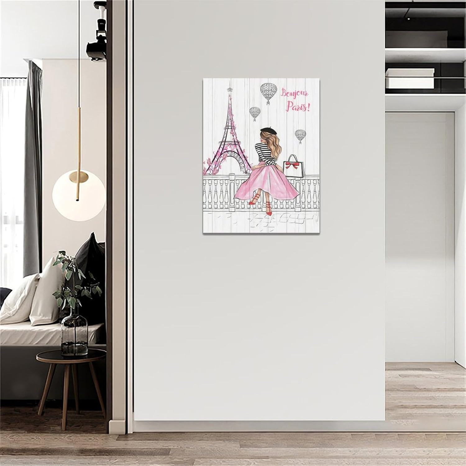 Pink Eiffel Tower Wall Art Romantic Paris Fashion Women Canvas Wall Decor Butterfly Eiffel Tower Picture Painting Print Modern Atwork For Girls Women Room Bathroom Office Framed Ready to Hang 20"x24"