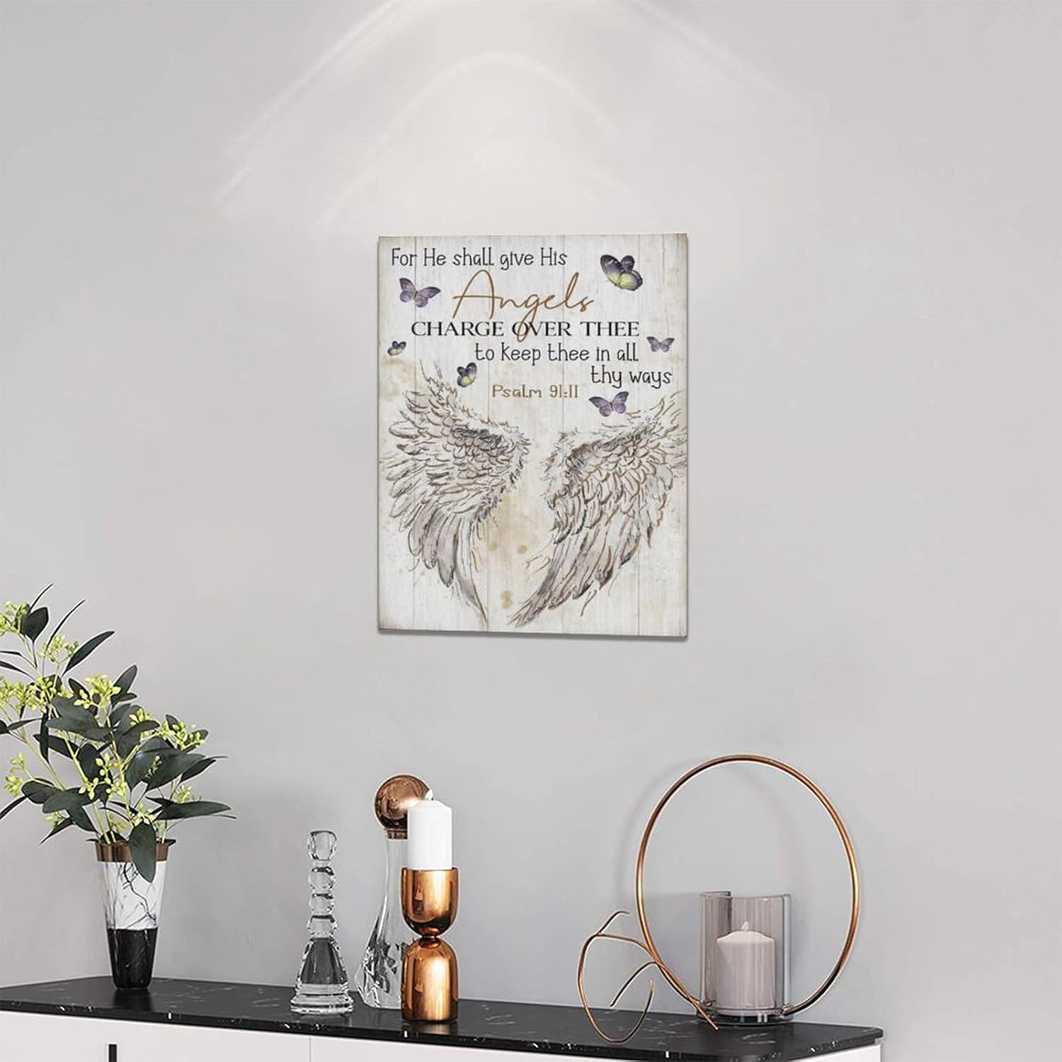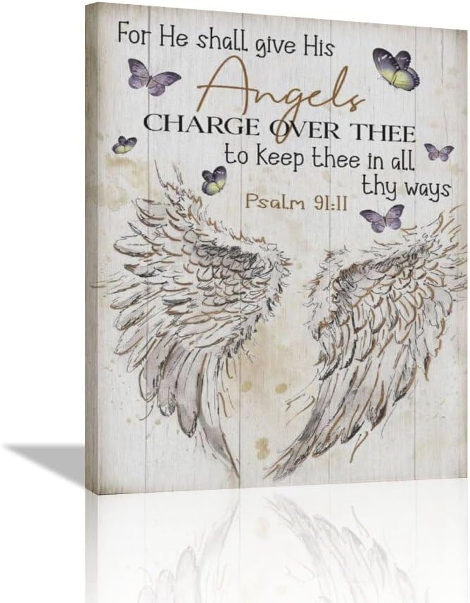 Scripture Psalm 91 Wall Art Christian Angel Wings Pictures Wall Decor Bible Verse Canvas Painting Print Artwork Abstract Modern Home Decorations Framed Ready to Hang for Office Living Room 20"x24"
