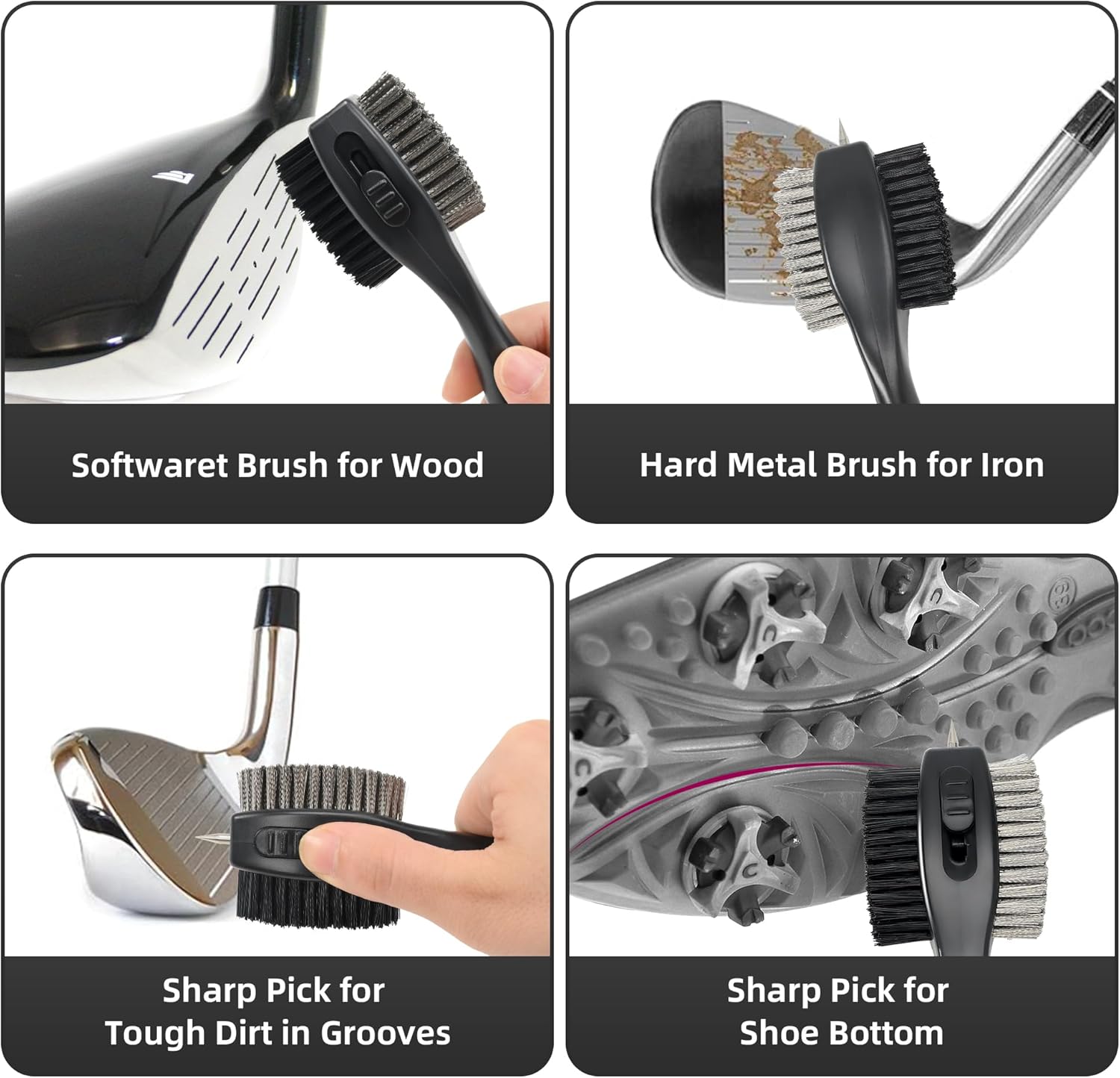 - 【Oversize Golf Brush】Retractable groove cleaner brush can clean individual grooves and hide them when not in use, providing security for every golfer.