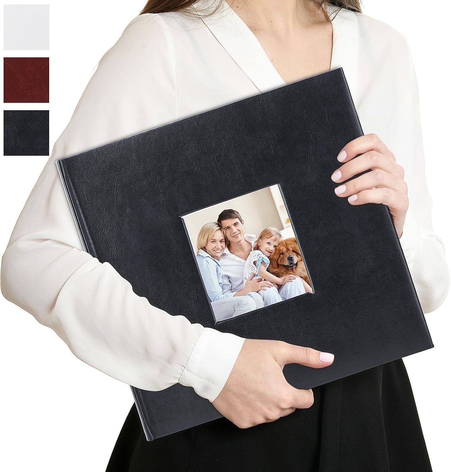 Leather Scrapbook Album DIY Set Scrap Book Album Hardcover Pictures Book 10.5"x10.5",DIY,Handmade for Anniversary,Family Memories,Couples,Friend&Baby,Accommodates 3x5 to 8x10 Photos (Leather-black)