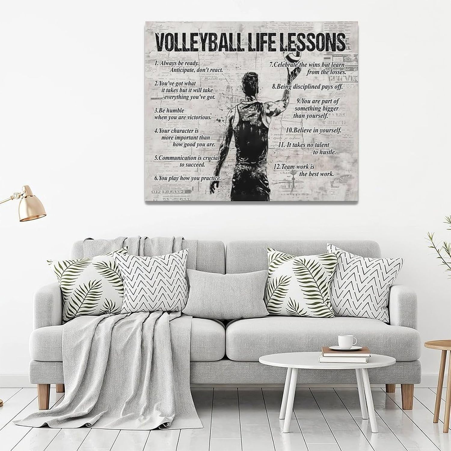 Volleyball Sports Wall Art Volleyball Life Lessons Wall Decor Volleyball Sign Retro Poster Boy Men Room Motivational Decorations Canvas Print Painting Artwork for Bedroom Bathroom Living Room 24"x20"