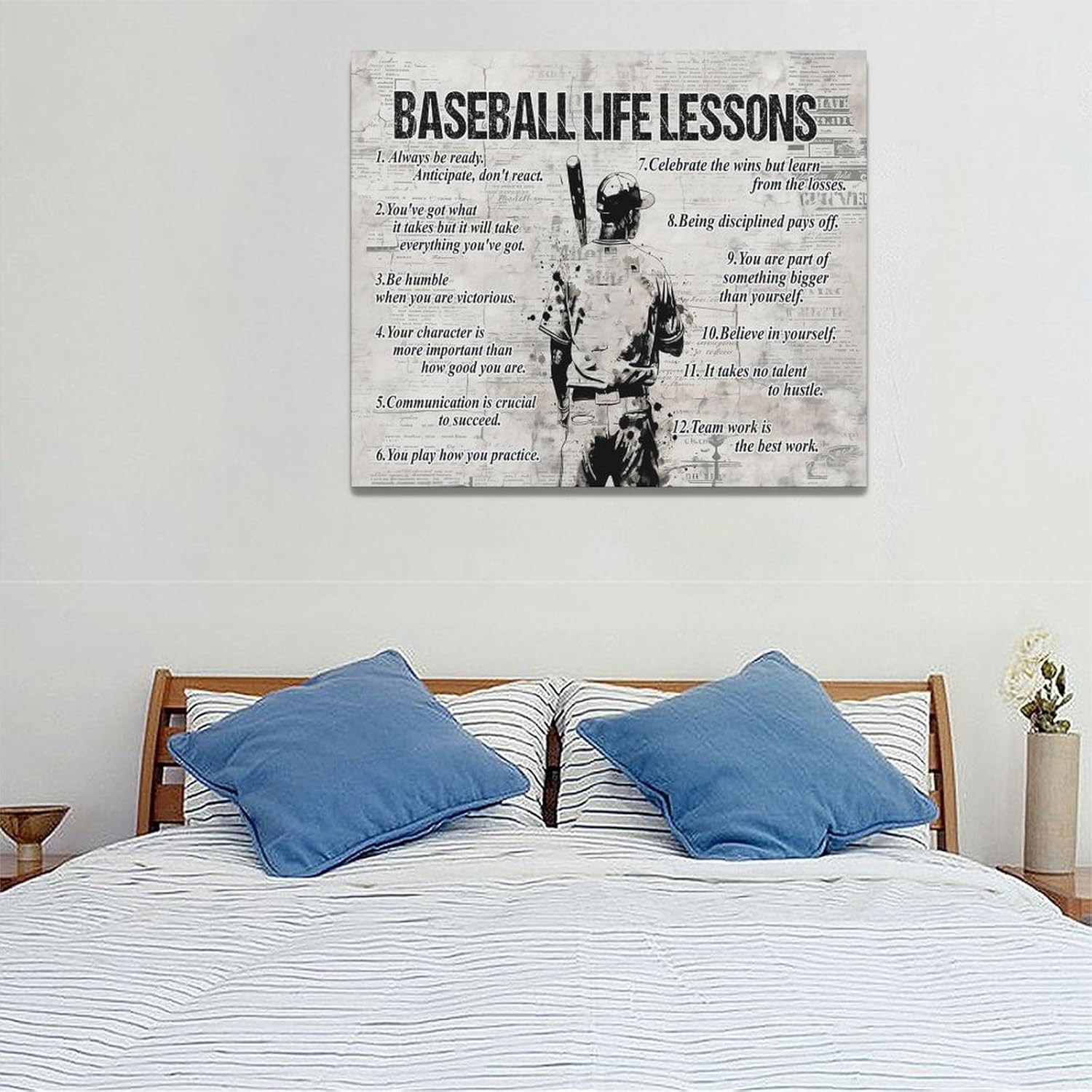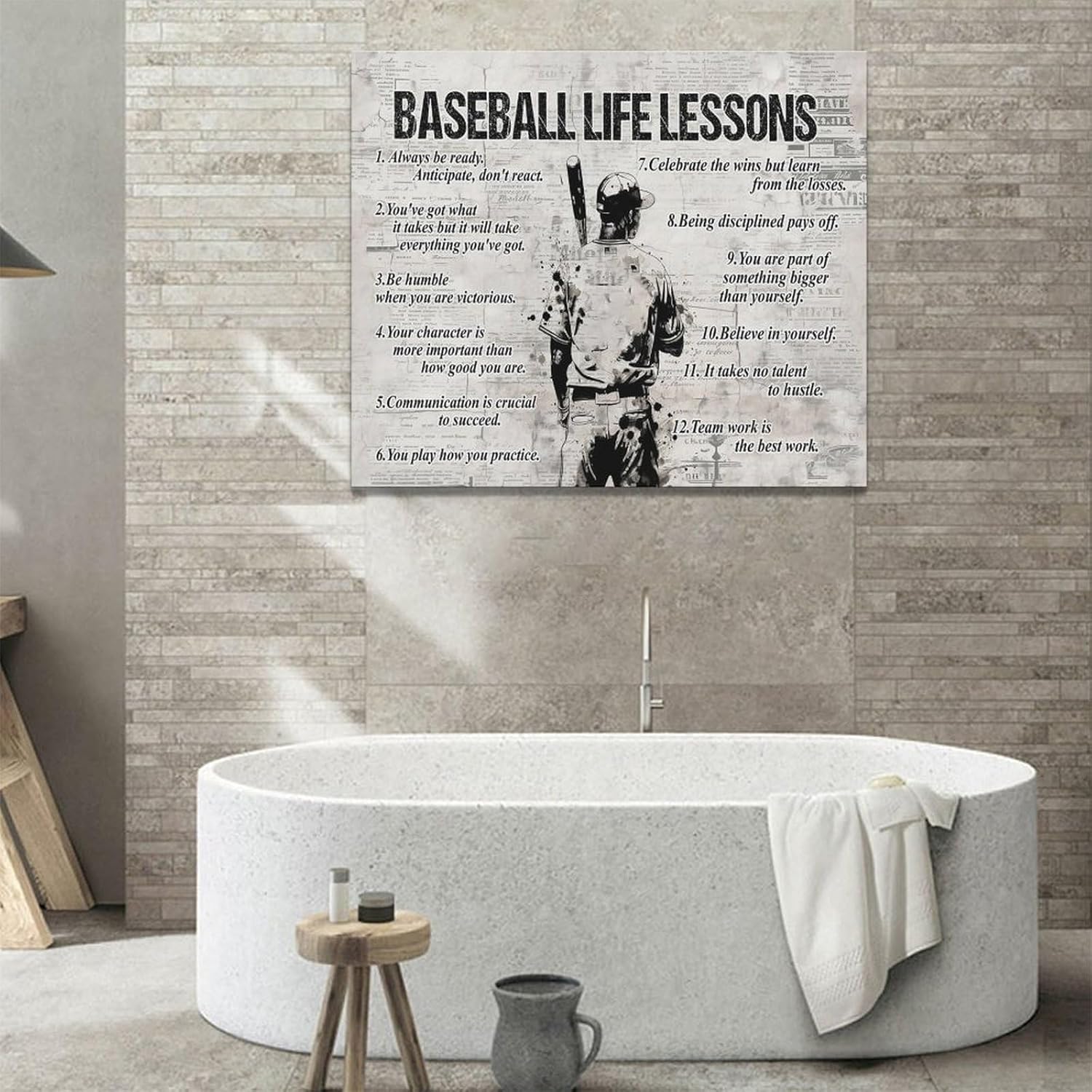 Baseball Sports Wall Art Baseball Life Lessons Wall Decor Baseball Sign Retro Poster Boy Men Room Motivational Decorations Canvas Print Painting Artwork for Bedroom Bathroom Living Room 24"x20"