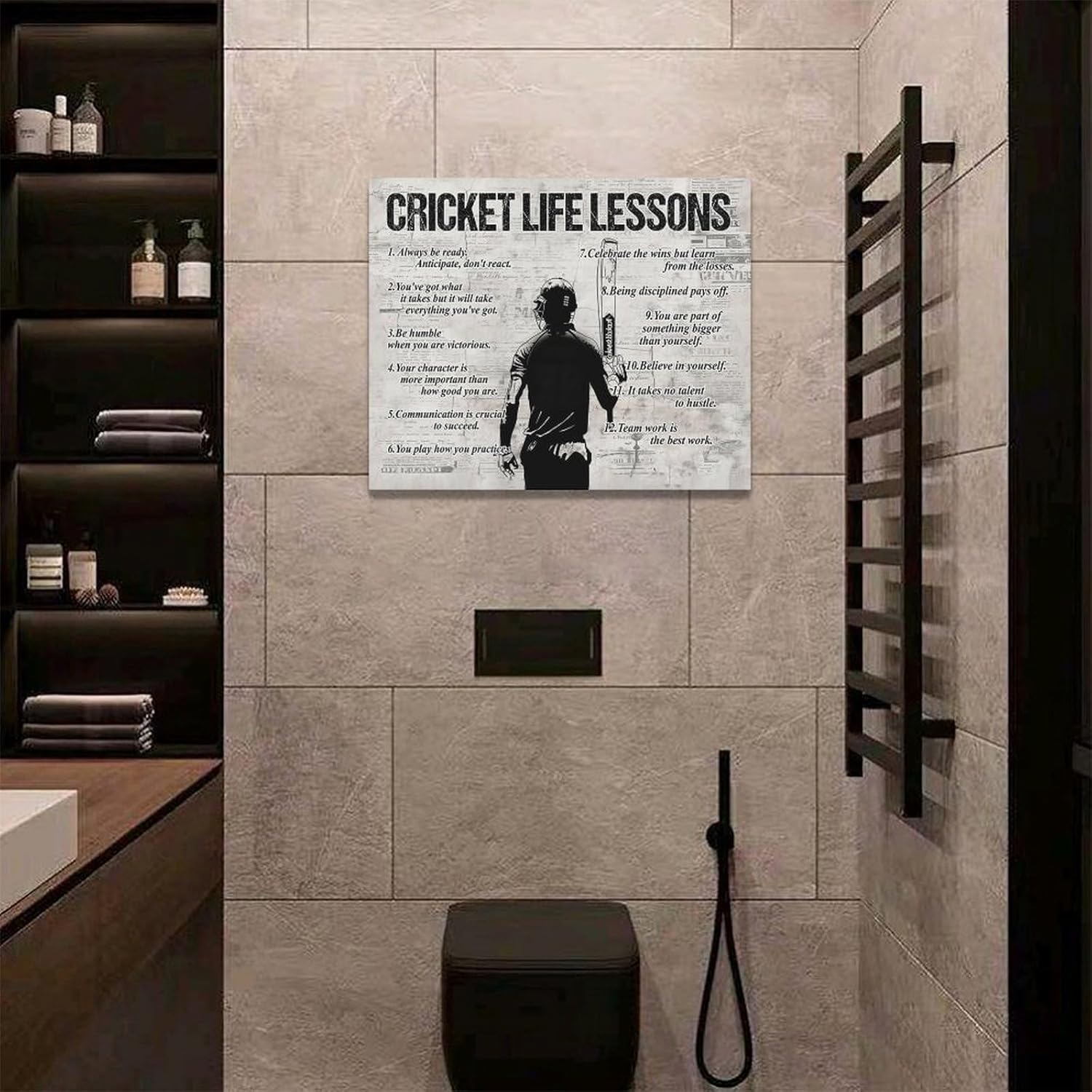 Gyeong Cricket Sports Wall Art Cricket Life Lessons Wall Decor Cricket Sign Retro Poster Boy Men Room Motivational Decorations Canvas Print Painting Artwork for Bedroom Bathroom Living Room 20"x16"
