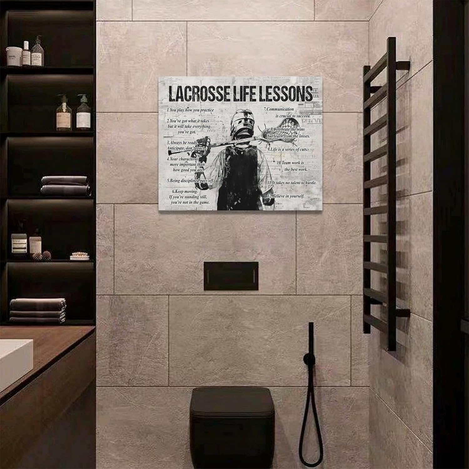 Lacrosse Sports Wall Art Lacrosse Life Lessons Wall Decor Lacrosse Sign Retro Poster Boy Men Room Motivational Decorations Canvas Print Painting Artwork For Bedroom Bathroom Living Room 20"x16"
