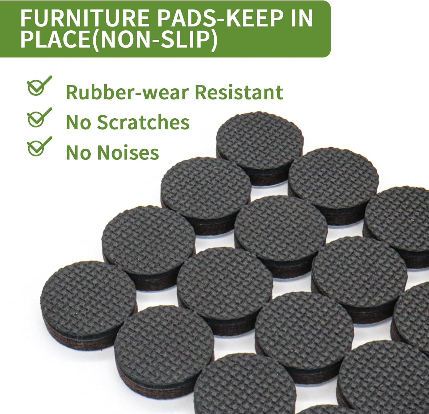 - STRONG AND EFFECTIVE DOUBLE FURNITURE GRIPS 48 PCS - 32 pcs 1” Round + 16 pcs 2" Square self stick furniture coasters are made of thick felt and soft rubber. This technology creates heavy duty shield for all types of your lovely floors (hardwood, laminate, vinyl, carpet) and keeps any furniture in place.