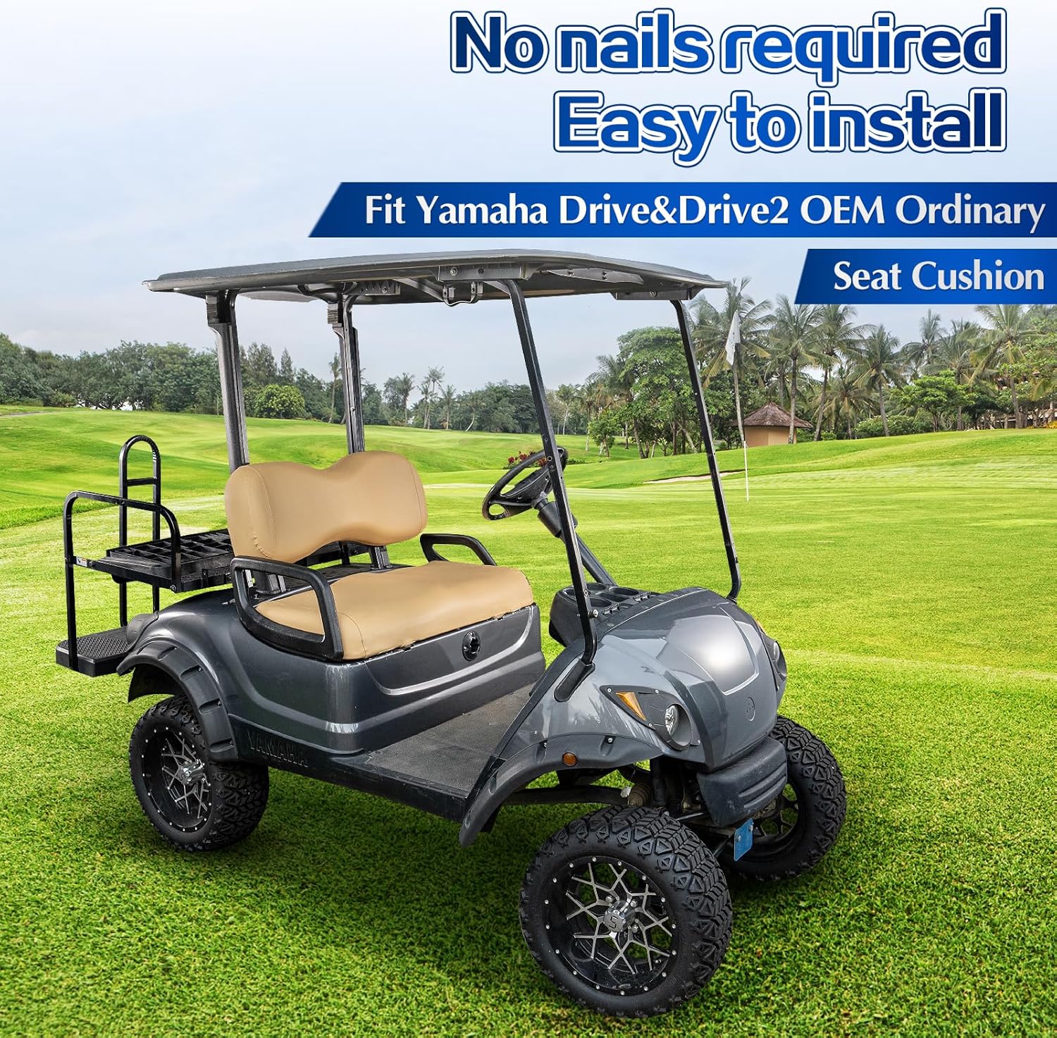 NOKINS Golf Cart Seat Covers Leather Front Seat Cover Fit Yamaha Drive&Drive 2,Smooth and Simple Style,No Stapler,Golf Cart Vinyl Waterproof Replacement Seat Cover,Tan