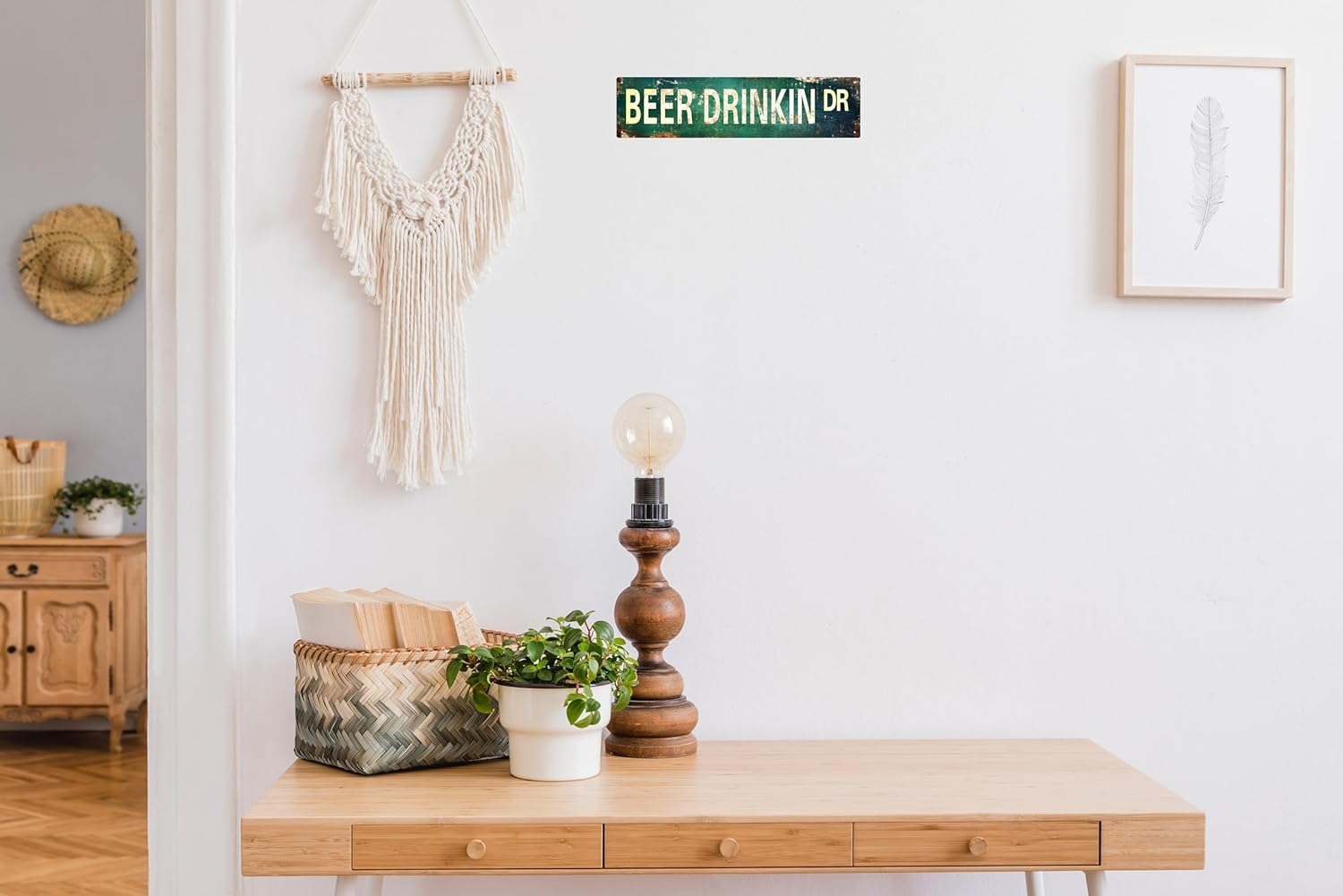 AWISZZZ Vintage Metal Tin Sign Retro Beer Drinkin Dr Signs Stylish Wall Art Plaques for Home Decor Bathroom Kitchen House and Gothic Wall Decor or as a Unique Poster 16x4 in