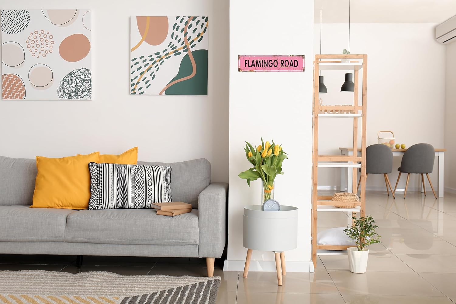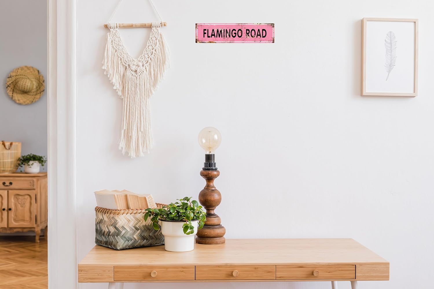 AWISZZZ Vintage Metal Tin Sign Retro Flamingo Road Signs Stylish Wall Art Plaques for Home Decor Bathroom Kitchen House and Gothic Wall Decor or as a Unique Poster 16x4 in