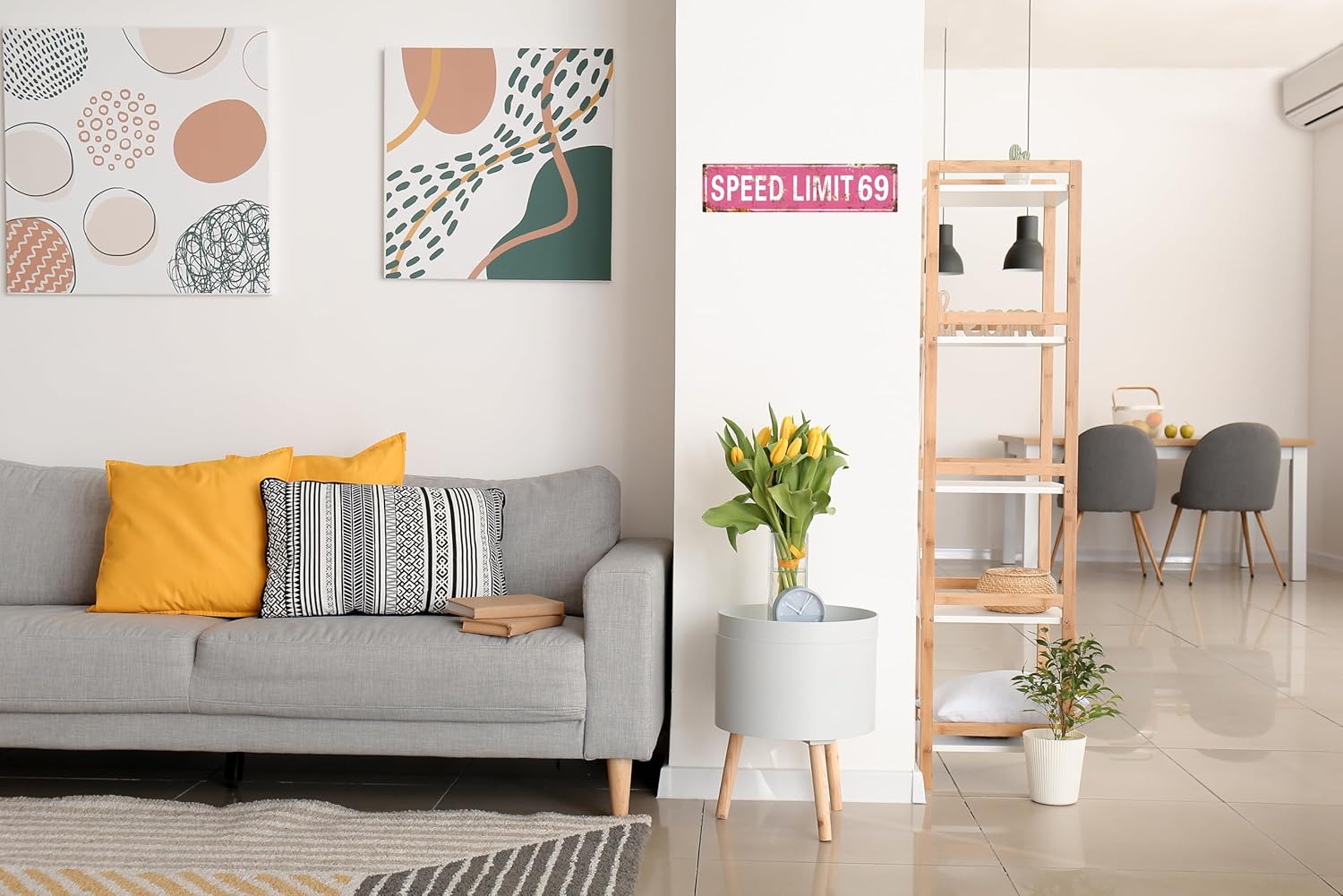 AWISZZZ Vintage Metal Tin Sign Retro Speed Limit 69 Signs Stylish Wall Art Plaques for Home Decor Bathroom Kitchen House and Gothic Wall Decor or as a Unique Poster 16x4 in