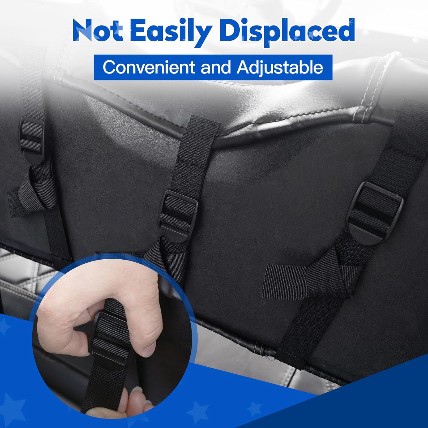 - High Quality Materials: This golf cart front and rear seat covers kit is made of high quality and durable vinyl, very soft, durable, scratch-resistant, UV-resistant, easy to clean, no need to worry about fading and cracking. The inner layer is made of high resilience thick breathable sponge for added comfort and good experience for your golf ride.