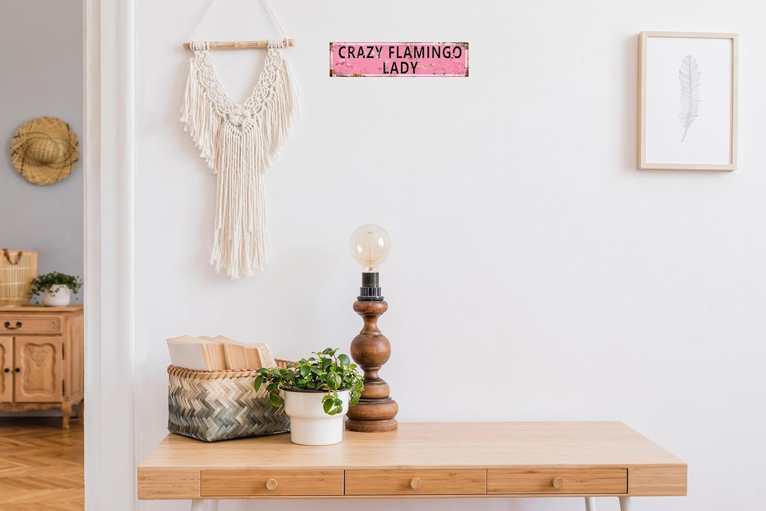 AWISZZZ Vintage Metal Tin Sign Retro Crazy Flamingo Lady Signs Stylish Wall Art Plaques for Home Decor Bathroom Kitchen House and Gothic Wall Decor or as a Unique Poster 16x4 in