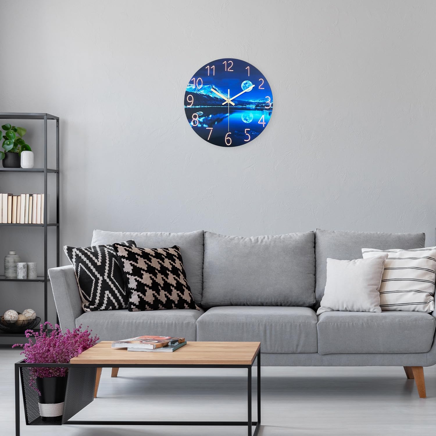 Big Wall Clocks Battery Operated 16 Inches or Larger Glass Moon Clock for Kitchen Blue Wall Clock Non Ticking