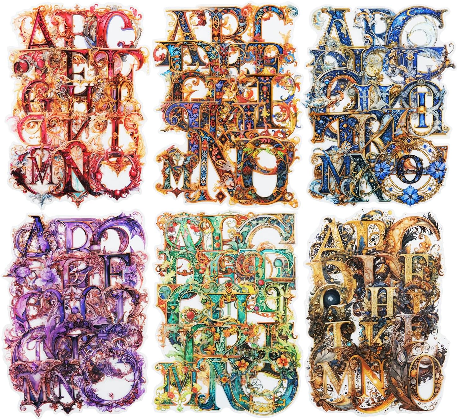 - Intricate Baroque Alphabet Designs: This sticker set features 156 unique pieces, each designed with exquisite baroque artistry. These elegant alphabet stickers are perfect for adding a sophisticated touch to your journals, scrapbooks, DIY crafts, and art projects, enhancing every creation with their detailed and vibrant designs.