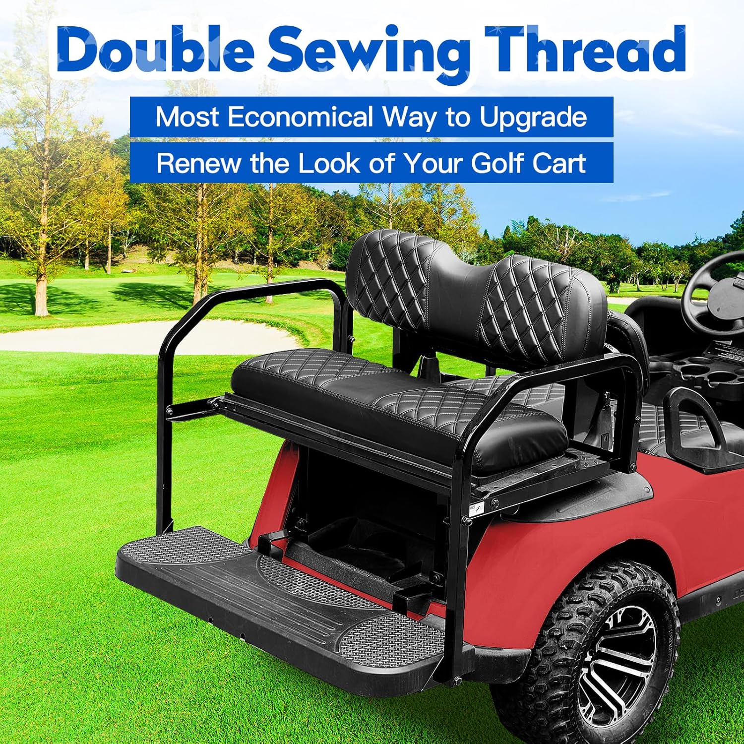 - Double Stitched Diamond Exterior Design: The golf cart seat covers are designed with a double stitched diamond pattern, adding a touch of luxury and elegance to your golf cart that is sure to turn heads on the course. Upgrade your golf cart's old seats.