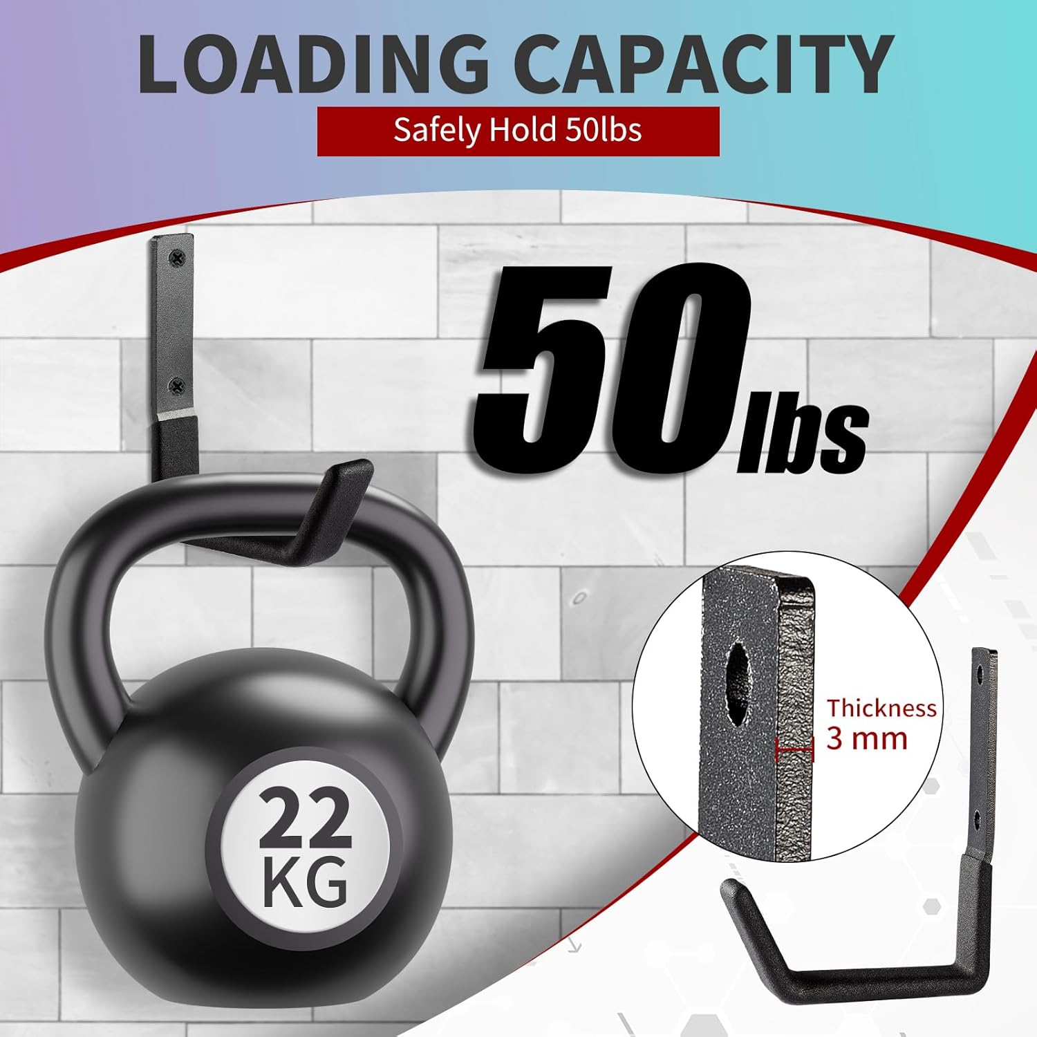- VARIOUS FUNCTIONS - Our utility hook is a flexible wall mounting solution for bikes, cables,hoses, spade, broom, wrench, stroller, skates, gym bags, shovel, rakes, kayak, sports equipment, sawhorses, and electrical cords,gym bars, Body Training and core strength builders and other items.