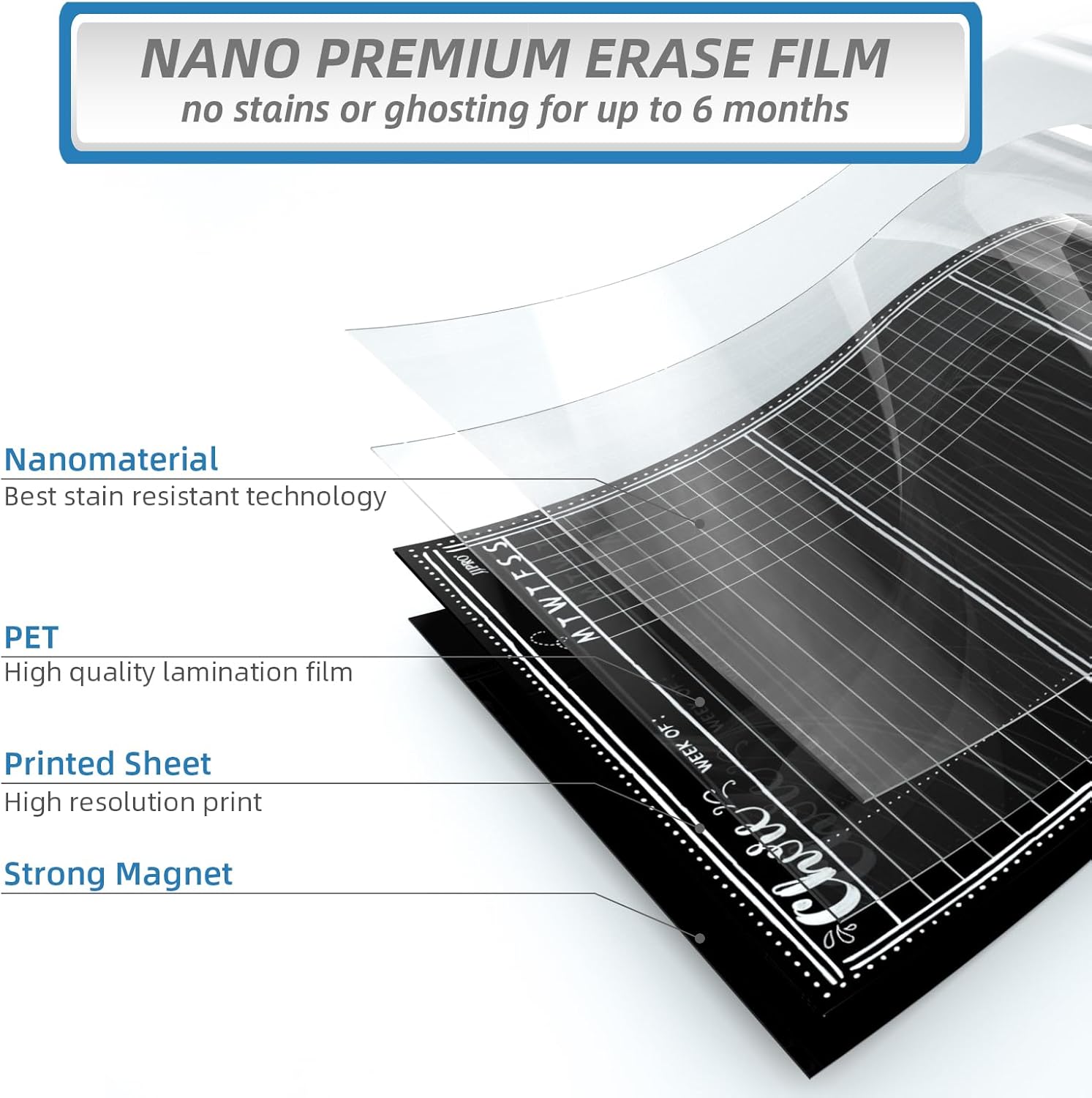 - WET ERASE - With nano premium erase film, it will be a breeze to wipe off the writings even after several months; itβs not going to leave any stains; itβs waterproof, so you can clean it with a wet cloth if you want.