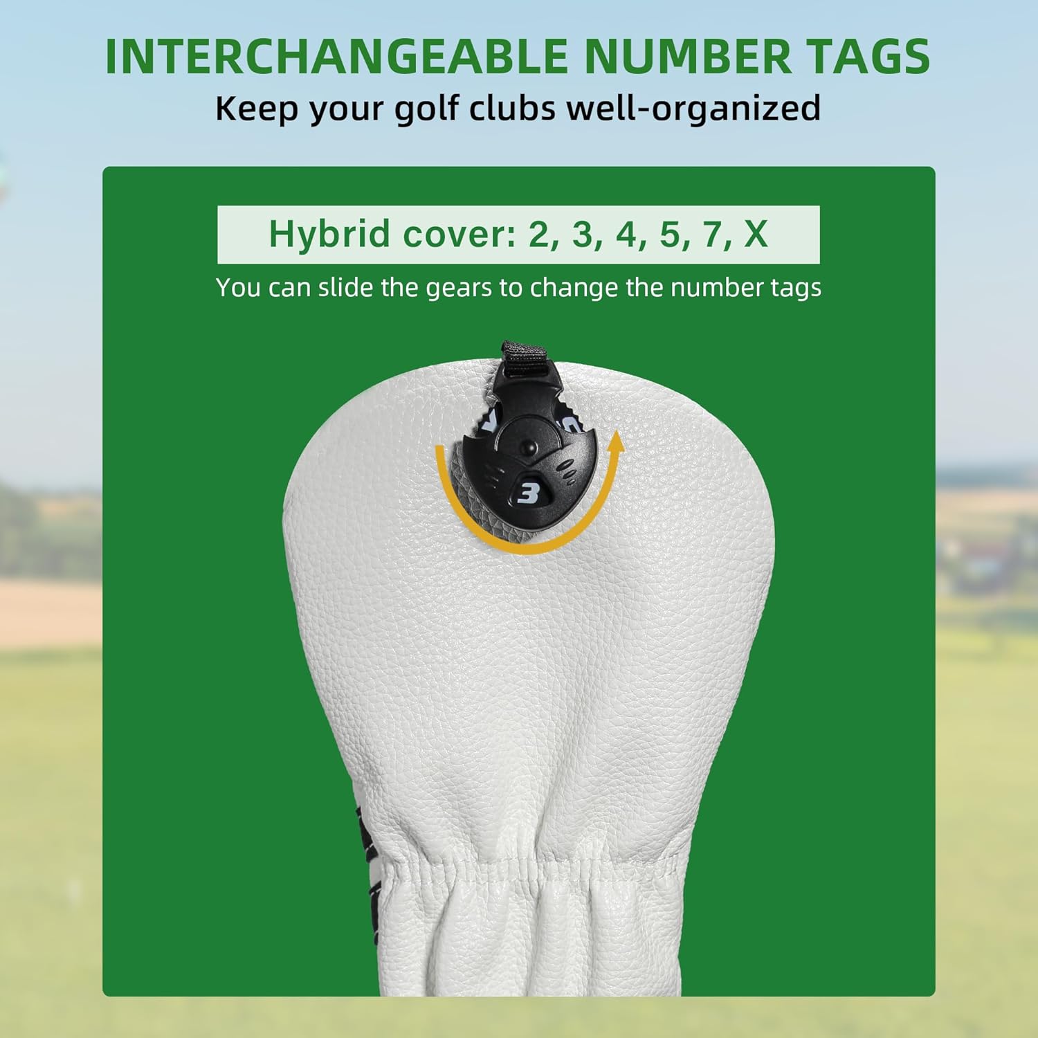 - Interchangeable Number Tags: The hybrid headcover come with an adjustable ID tags for 2 3 4 5 6 Ut,prevent confusing club and easy to use.