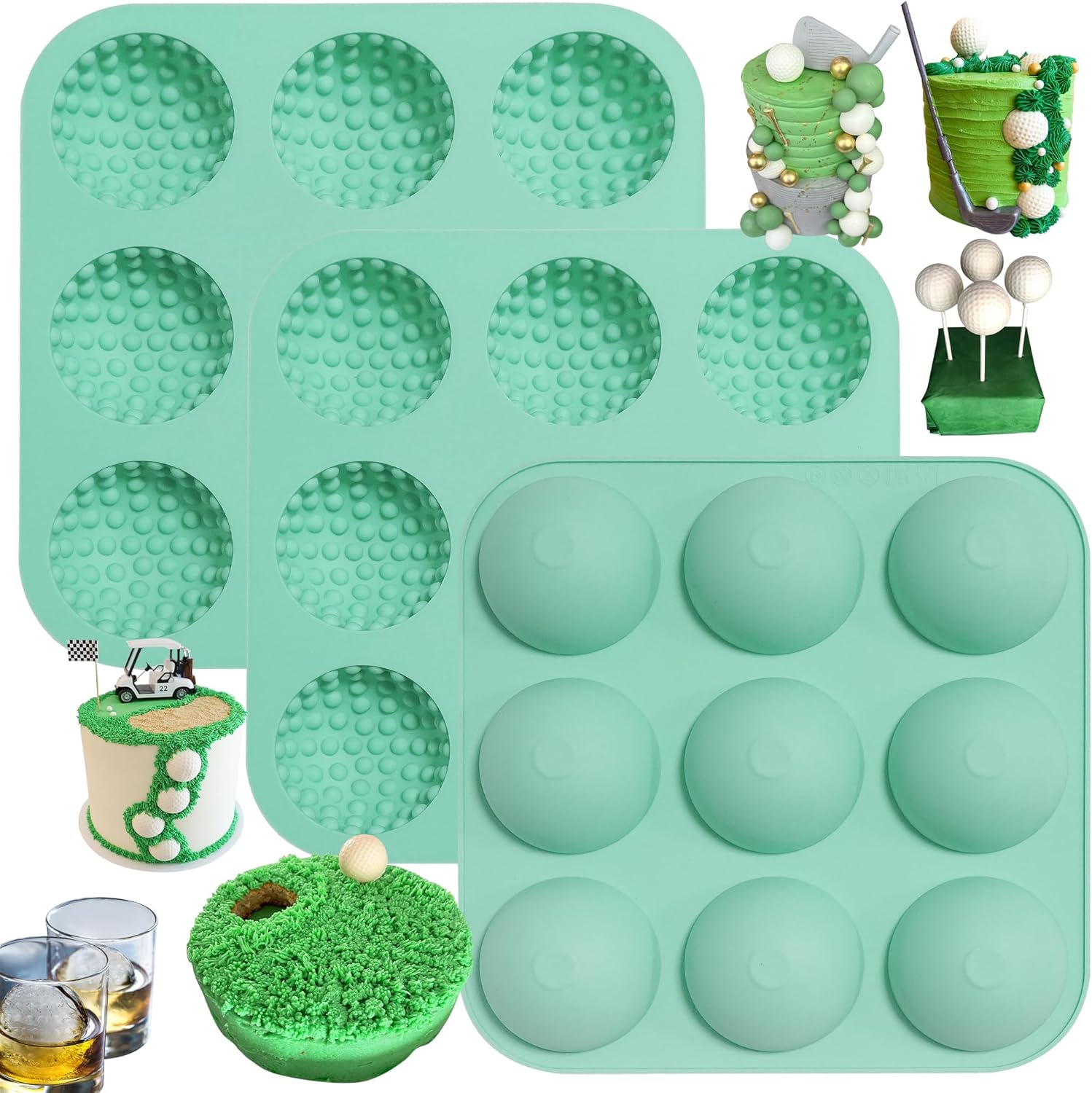 Golf Ball Chocolate Mold, Silicone Golf Ball Mold for Cake Pops, 9-Cavity 3D Golf Ball for Chocolate, Ice Cube (Golf Mold 3Pack)