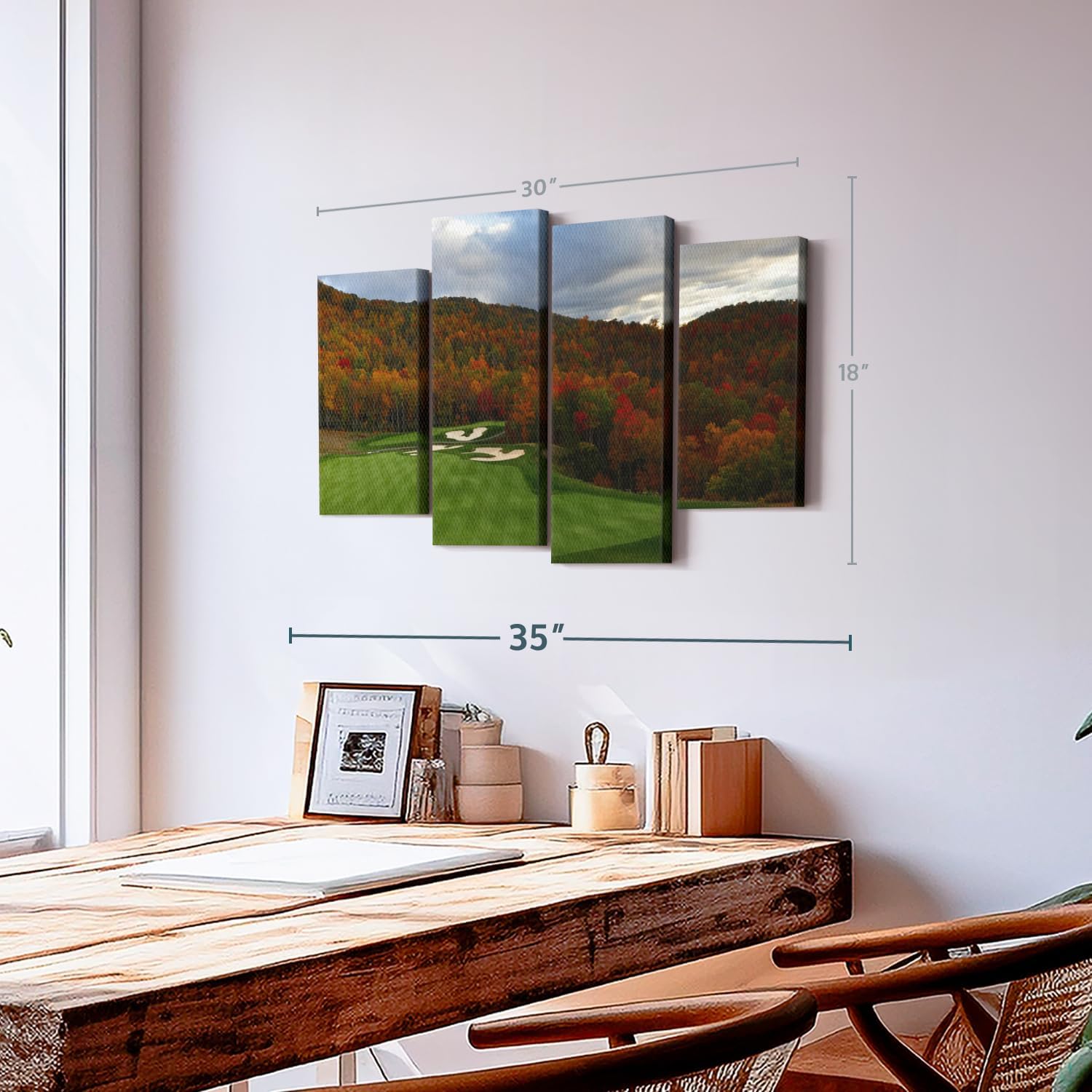 - Durable Canvas Features - Our long-lasting other sports 4-Piece canvas is made from a non-fading UV and Humidity-resistant 330 GSM Polyester Canvas. This Autumn Golf Course canvas can be used as a modern living room wall art.