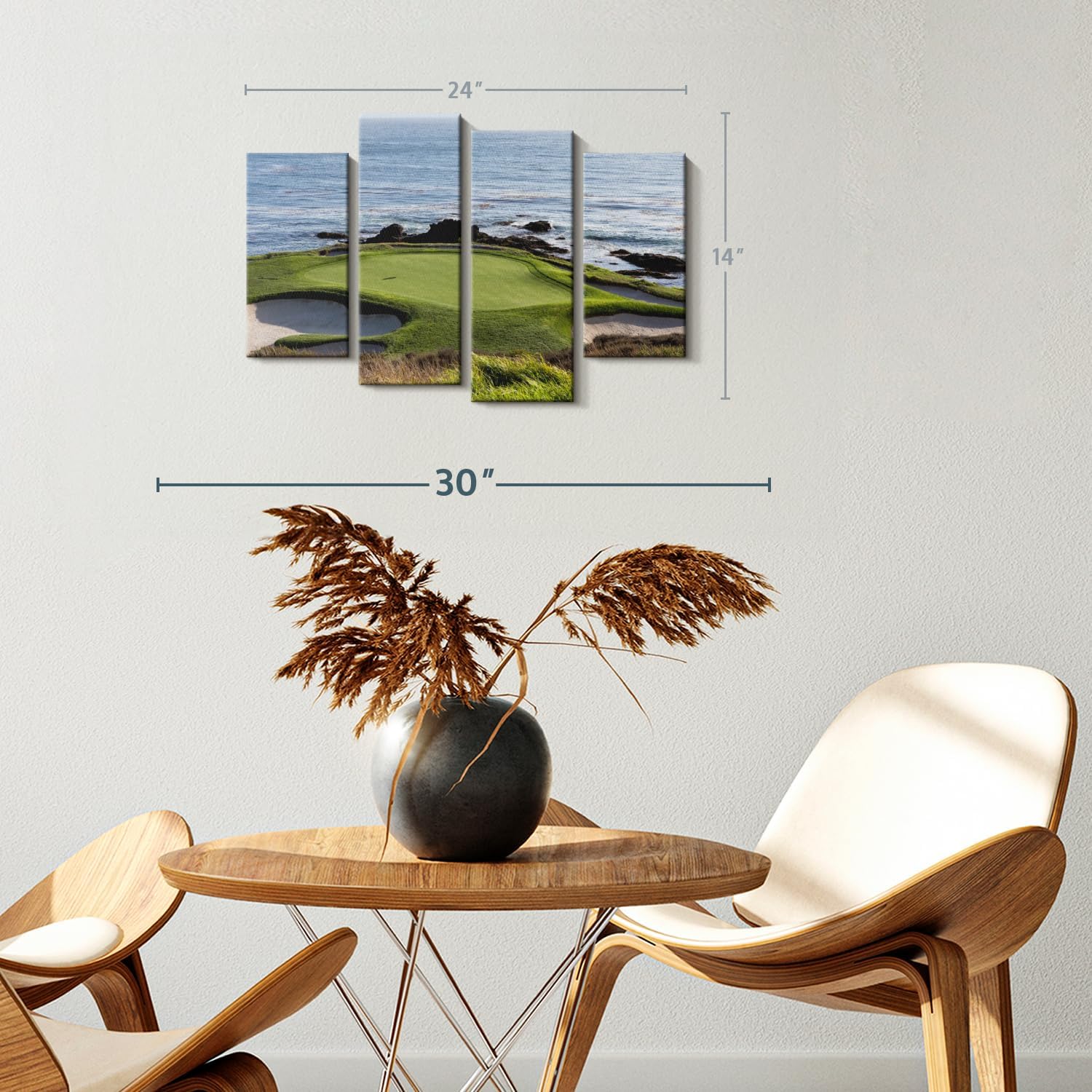 - Durable Canvas Features - Our long-lasting outdoor hobbies 4-Piece canvas is made from a non-fading UV and Humidity-resistant 330 GSM Polyester Canvas. This Pebble Beach Golf Turf canvas can be used as a rustic hallway wall art.