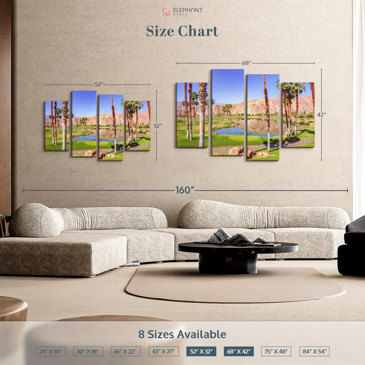 Elephant Stock La Quinta Golf Course Wall Art - Horizontal Canvas - 4-Piece Living Room Wall Decor - Photography Sports Canvas Print - Beige and Brown Decor for Wall - 68" X 42"