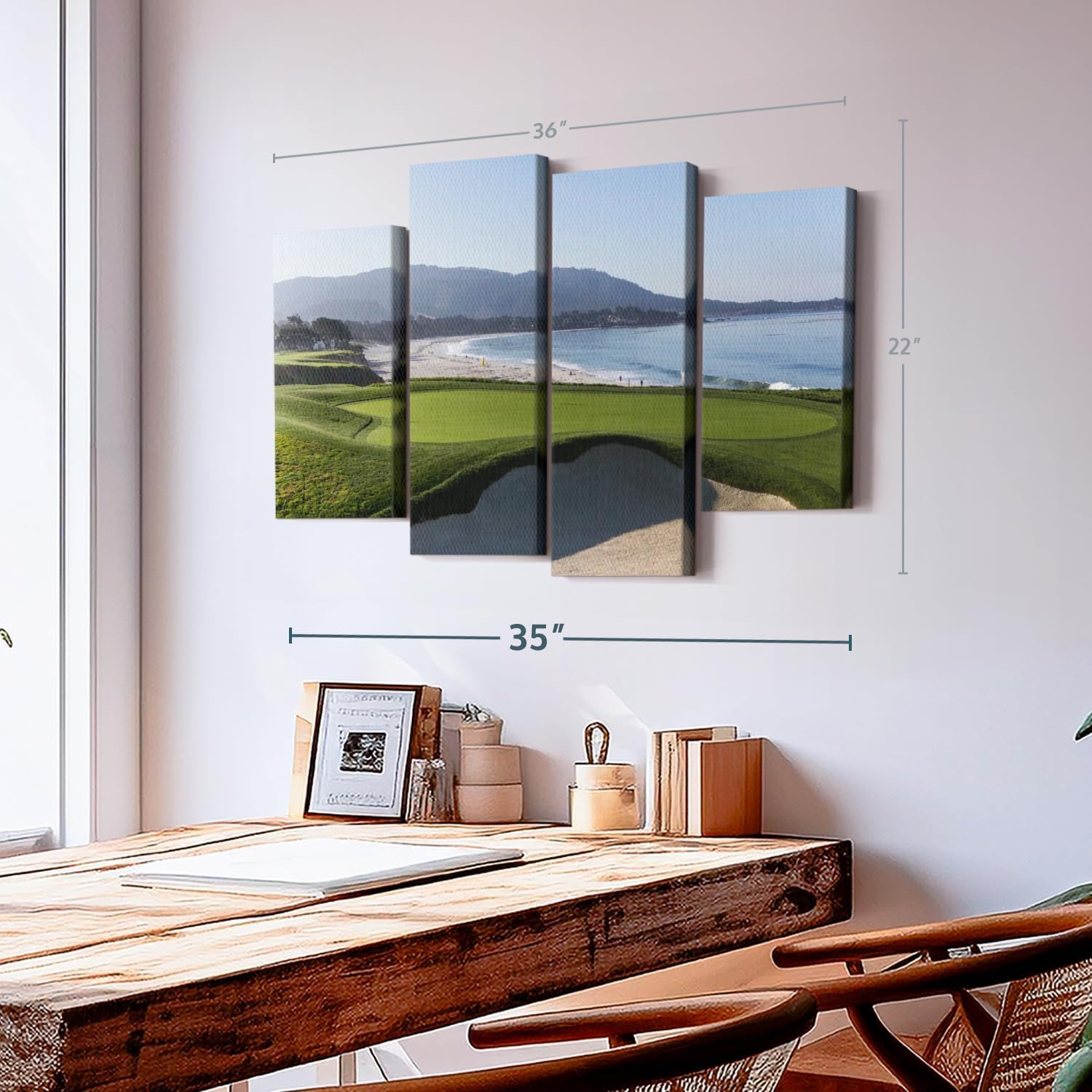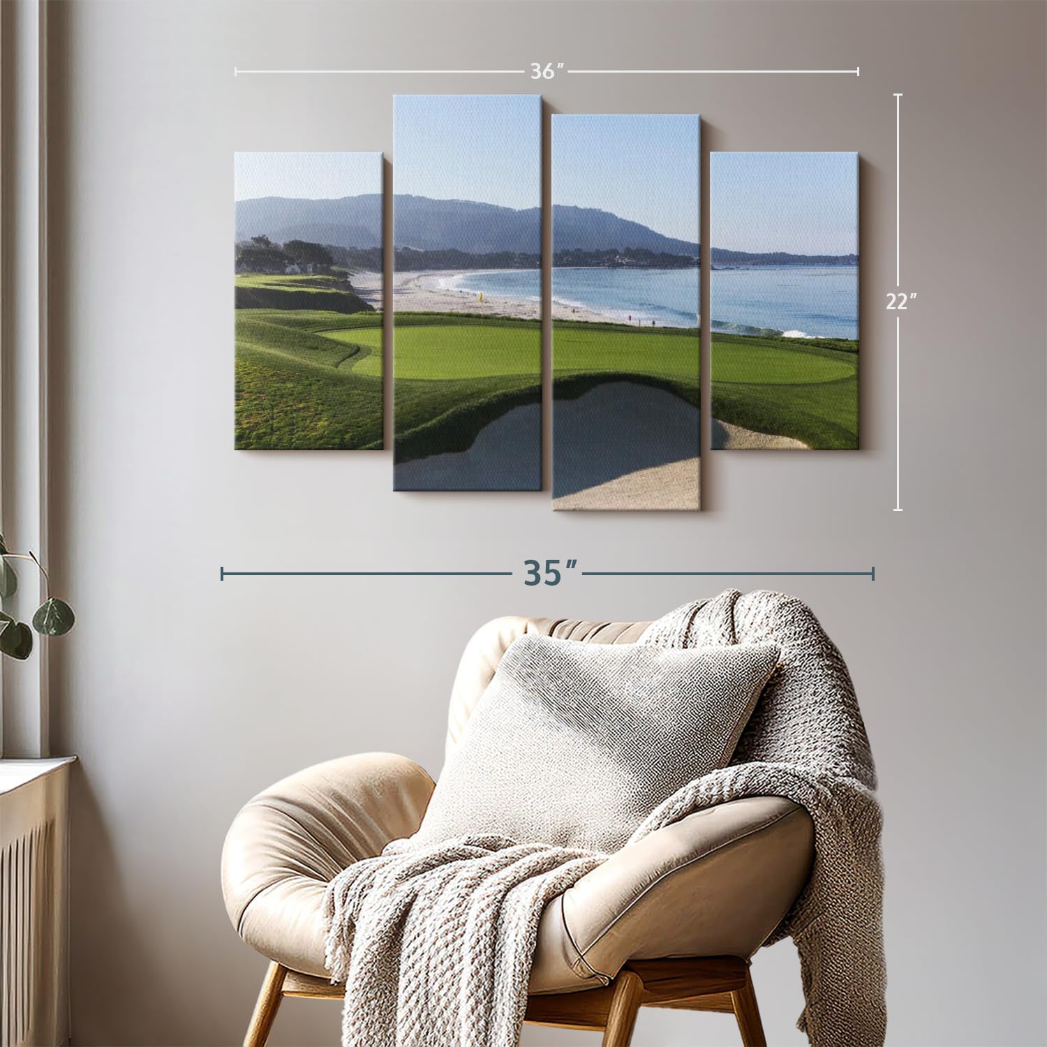 Elephant Stock Monterey CA Golf Course Wall Art - Horizontal Canvas - 4-Piece Living Room Wall Decor - Photography Sports Canvas Print - Blue and Green Decor for Wall - 36" X 22"