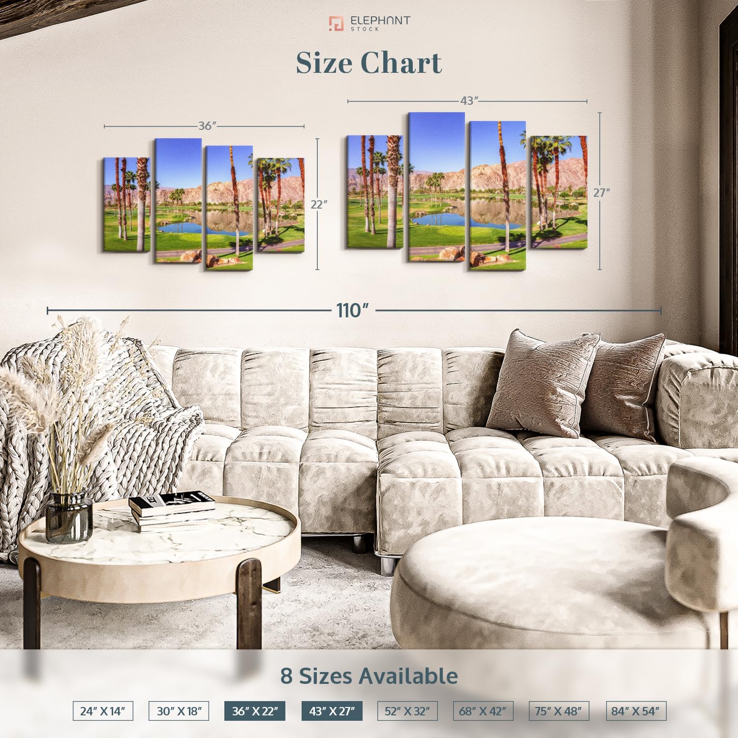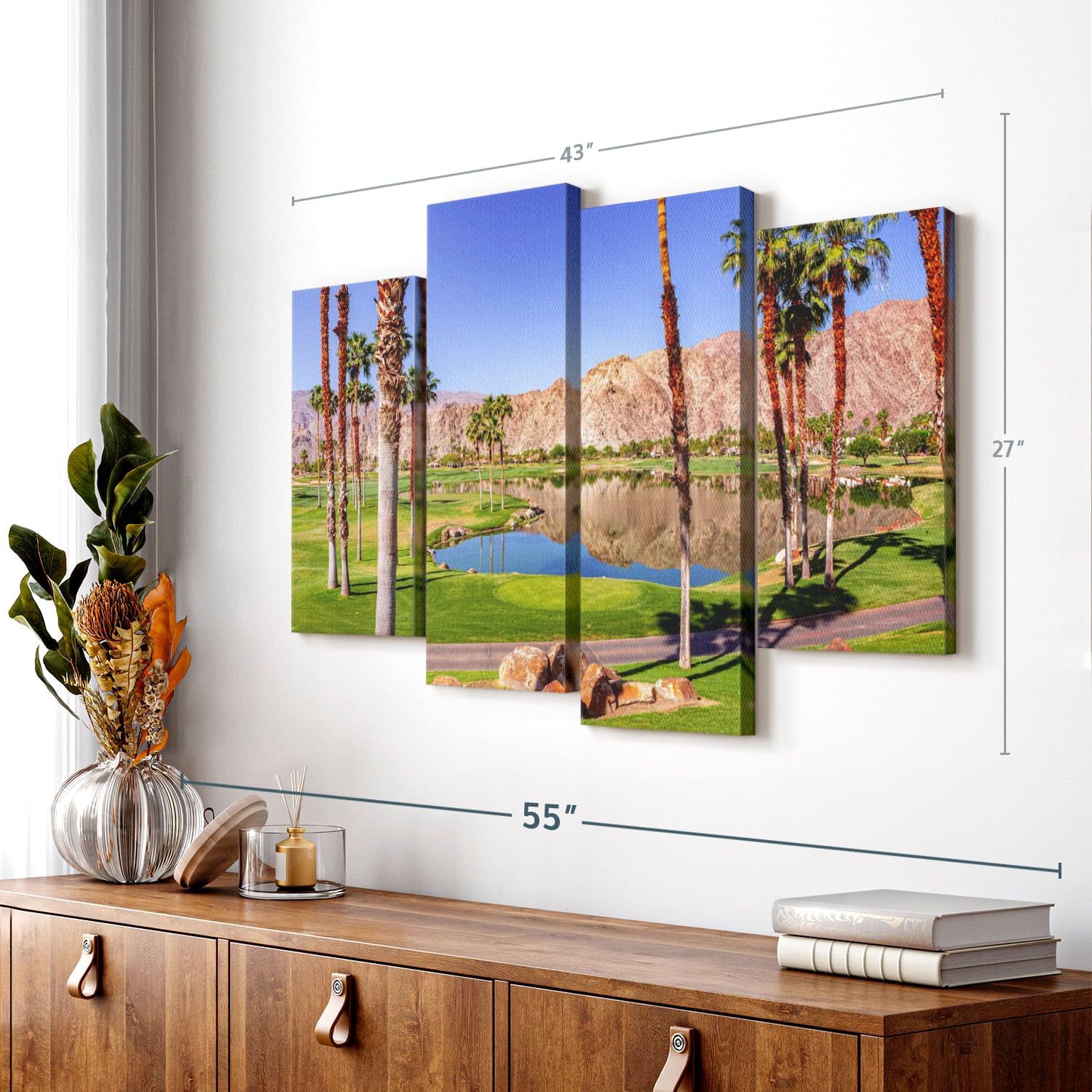 ElephantStock La Quinta Golf Course Wall Art - Horizontal Canvas - 4-Piece Living Room Wall Decor - Photography Sports Canvas Print - Beige and Brown Decor for Wall - 43" X 27"