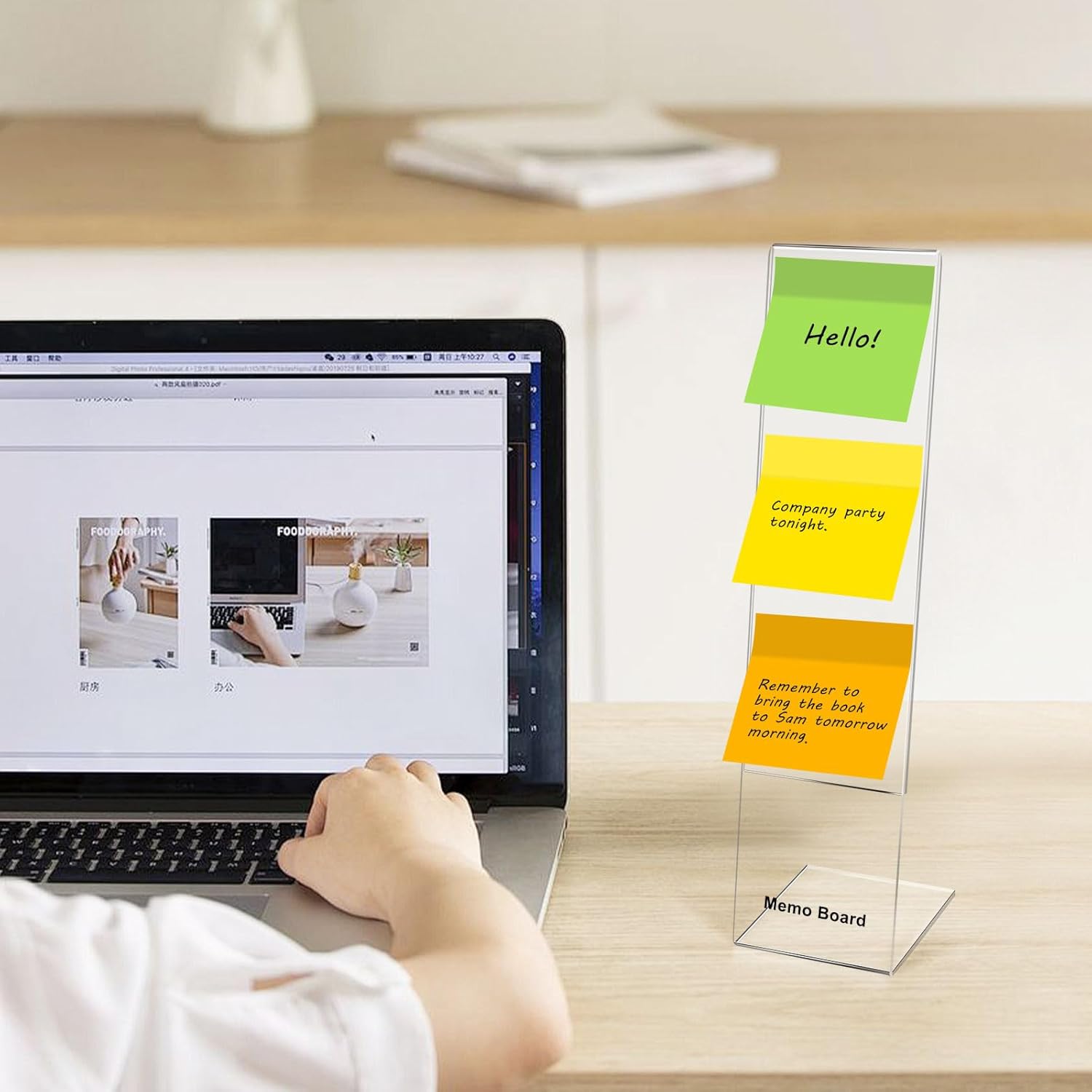 Monitor Memo Board Holder by Computer Screen Acrylic Sticky Note Stand Message Panel Reminder for Office, Pack of 4, Clear