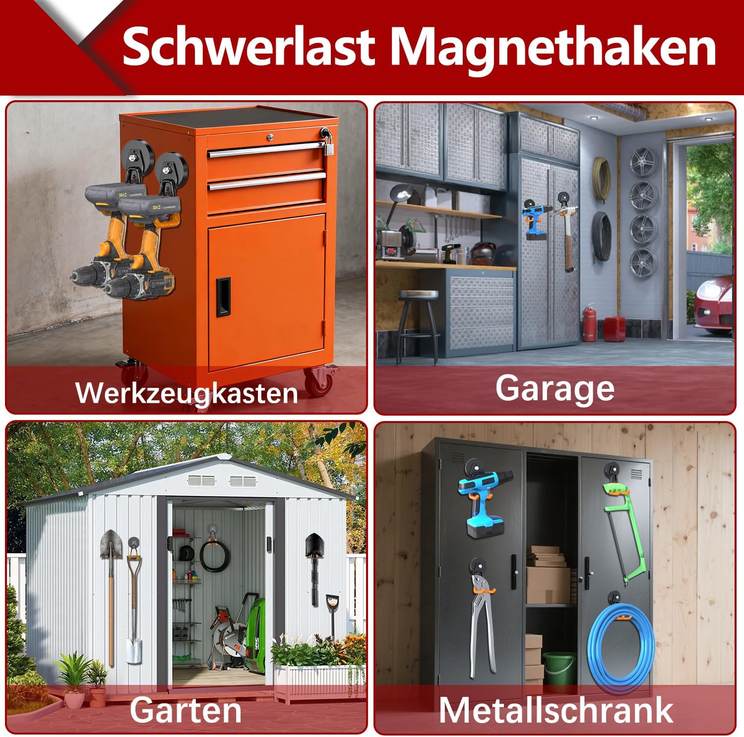 - Space Saving Heavy Duty Magnetic Hook: Our strong magnetic hooks offer an ideal solution for efficiently utilizing vertical garage storage space. The heavy duty magnetic hook is portable,versatile for use in garages, kitchens, offices, warehouses, gardens, and basements. These magnet hooks heavy duty help to reduce clutter and maximize available space to hang hoses, ropes, shovels, wires, cables, rakes and more