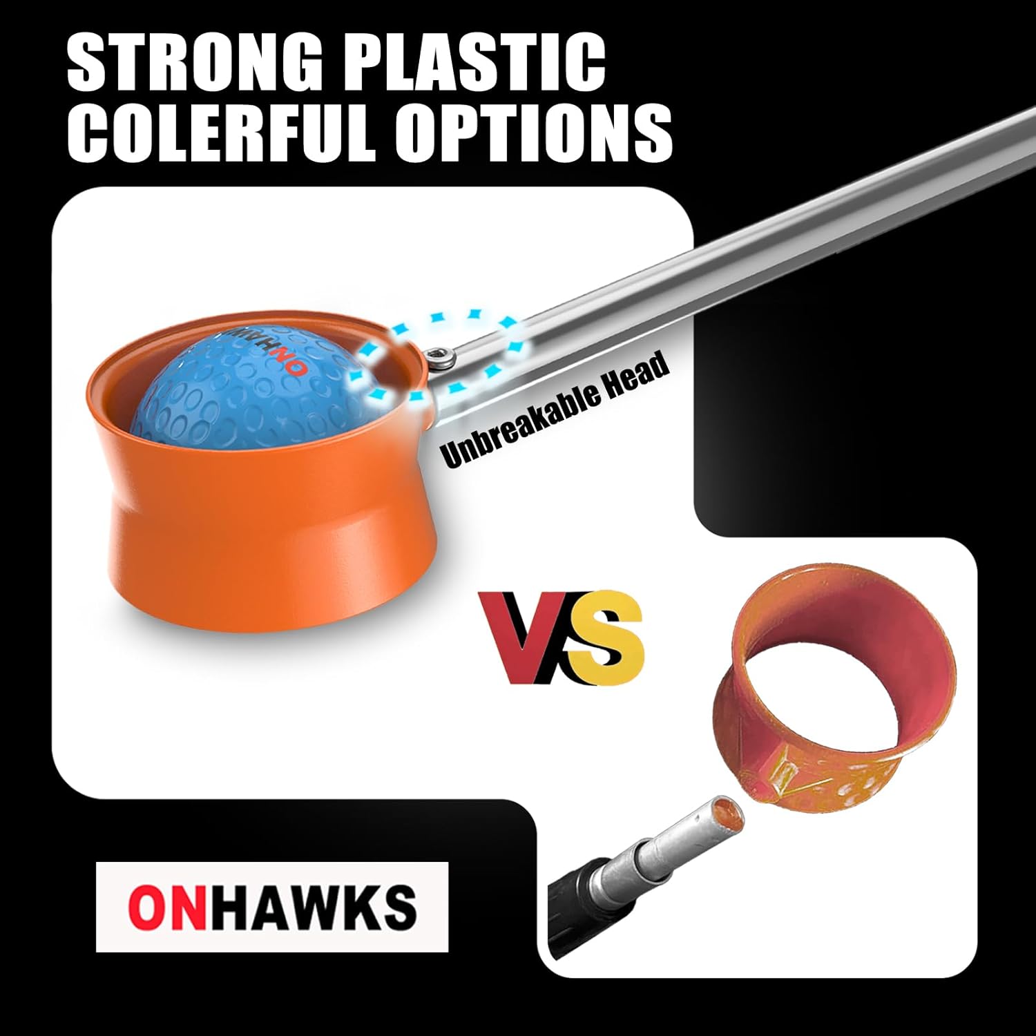 • 【Tired of losing golf balls in water hazards and ponds?】:The ONHAWKS Golf ball retriever Wide Range of Applications: Our golf ball pick up grabber can grab the ball on the ground sturdy, no need to bend over to retrieve the ball any longer.When the ball falls in the lake, pond, bushes, mud or boundary fence, the golf ball picker is very useful for you, you don't need to bend over or wet your shoes to retrieve the ball, effectively saving your time and energy.
