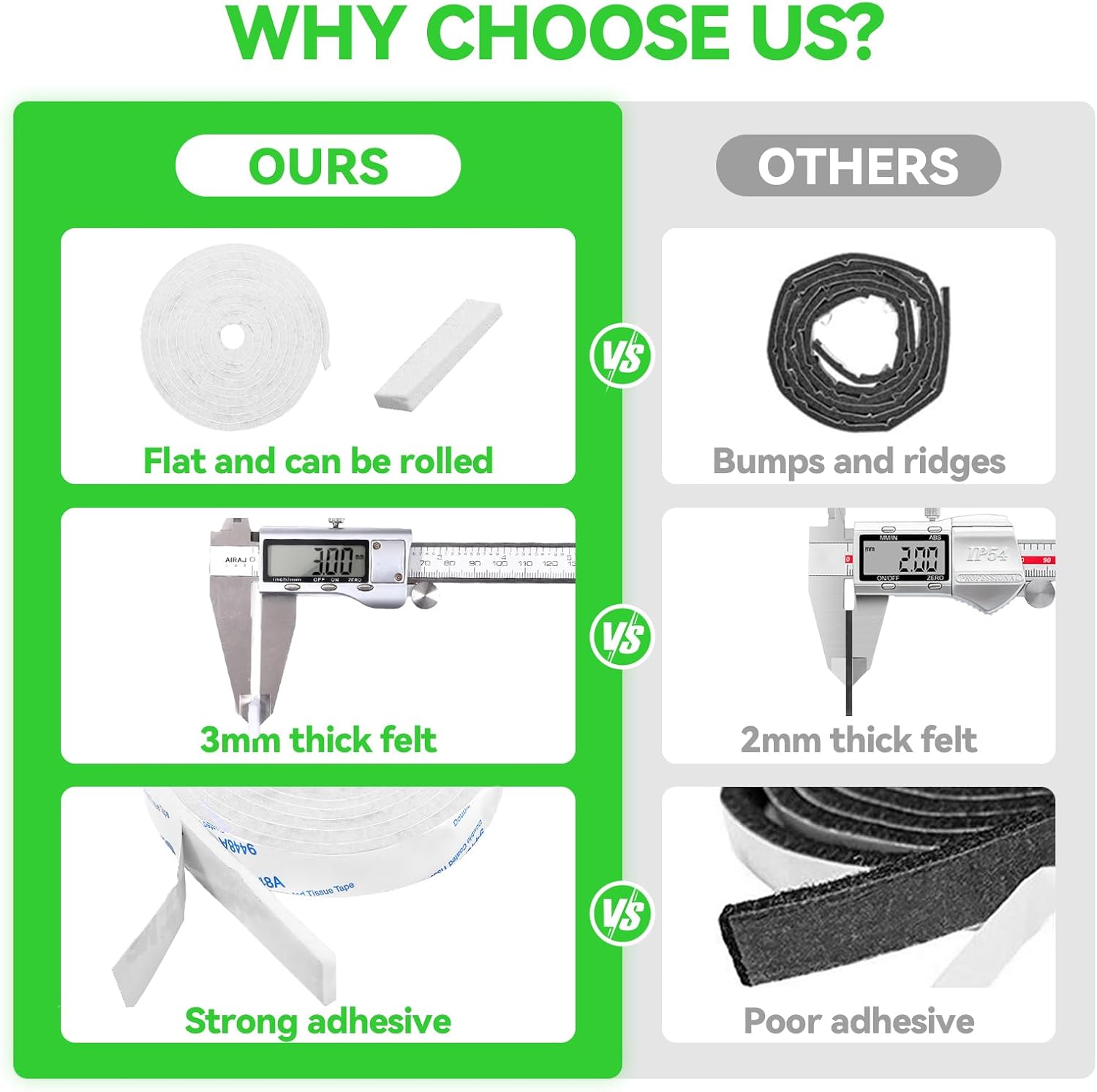 - Highly adhesive: Features 3mm thick and soft felt strips with strong adhesive backing for long-term use