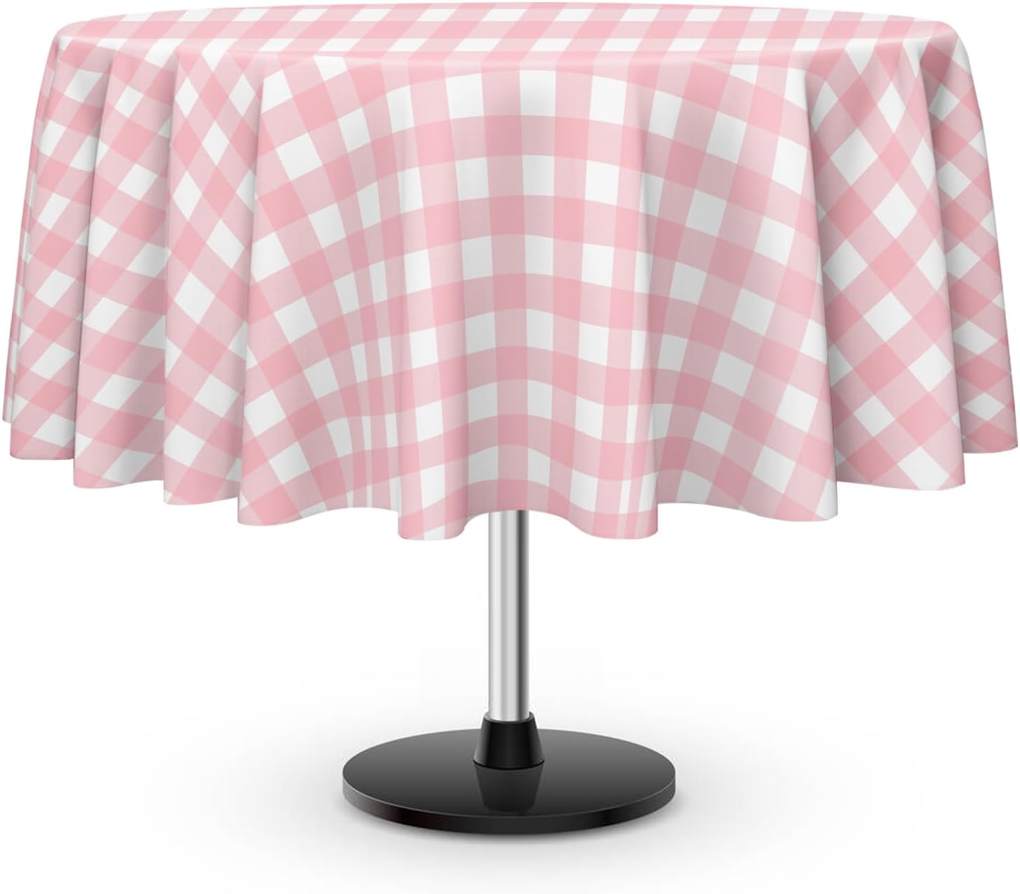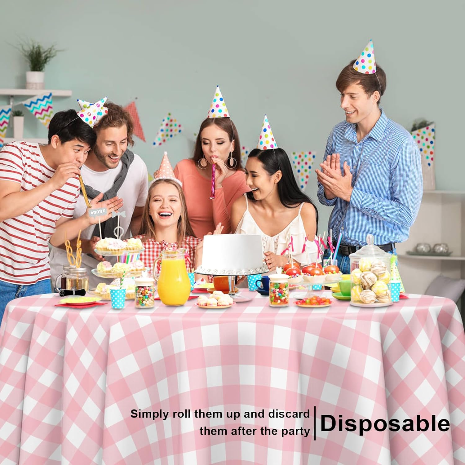 - 【Durable Plastic Tablecloths】Our round disposable pink and white checkered tablecloths are made of premium durable PE material, creating a waterproof barrier that keeps your table fully protected at all times. The disposable pink and white checkered tablecloth measures 84 x 84 inches, covers an 8-foot table, and can be cut to size. Our package includes a 6-pack of pink and white gingham plastic tablecloths, and you'll have enough covers for even big events or multiple occasions
