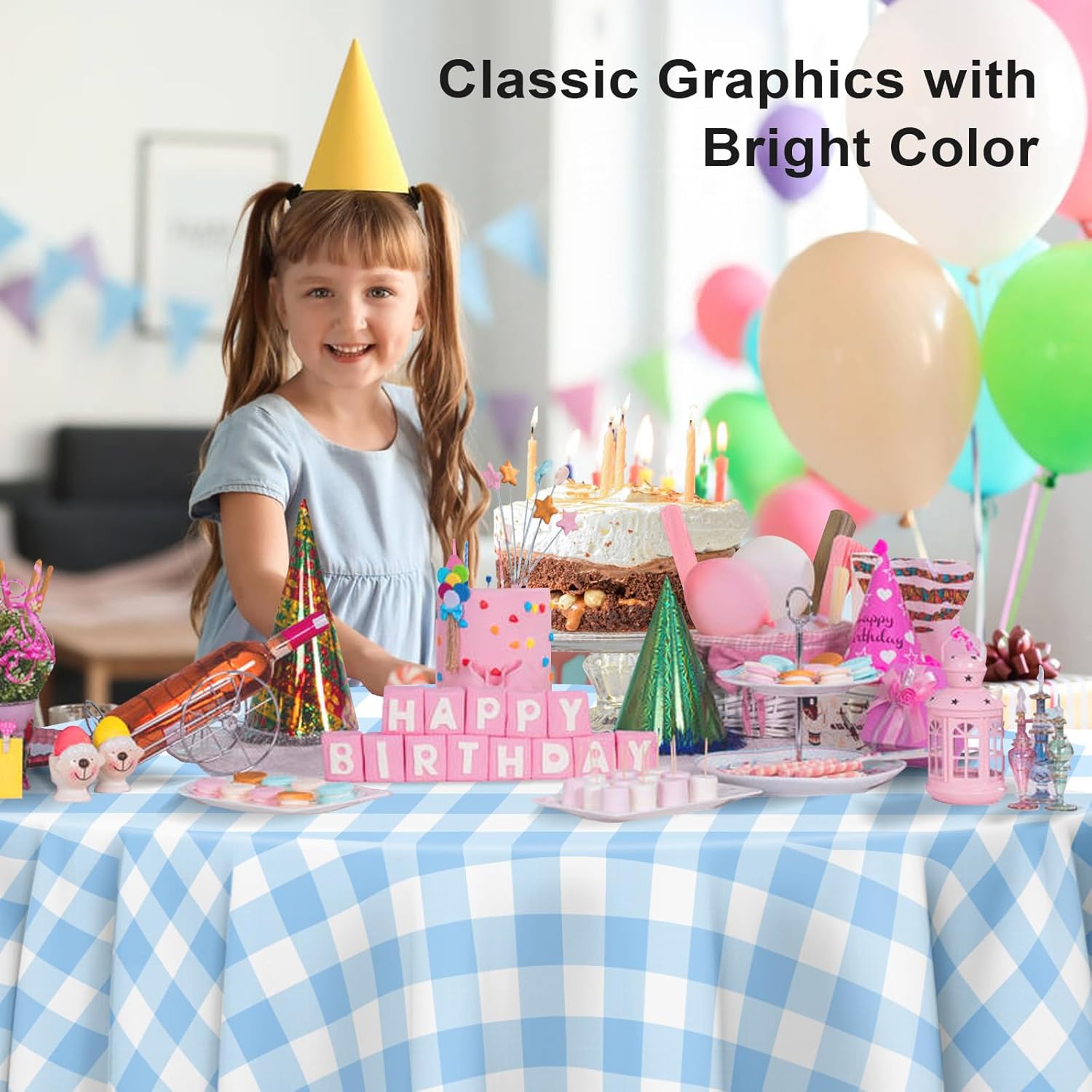 - 【Decorative Tablecloths】Turn any boring table into the centerpiece of your next party, family gathering or event venue with these gorgeous tablecloths. These disposable blue and white gingham tablecloths are an elegant and practical combination that creates a beautiful and enjoyable atmosphere for your family and friends