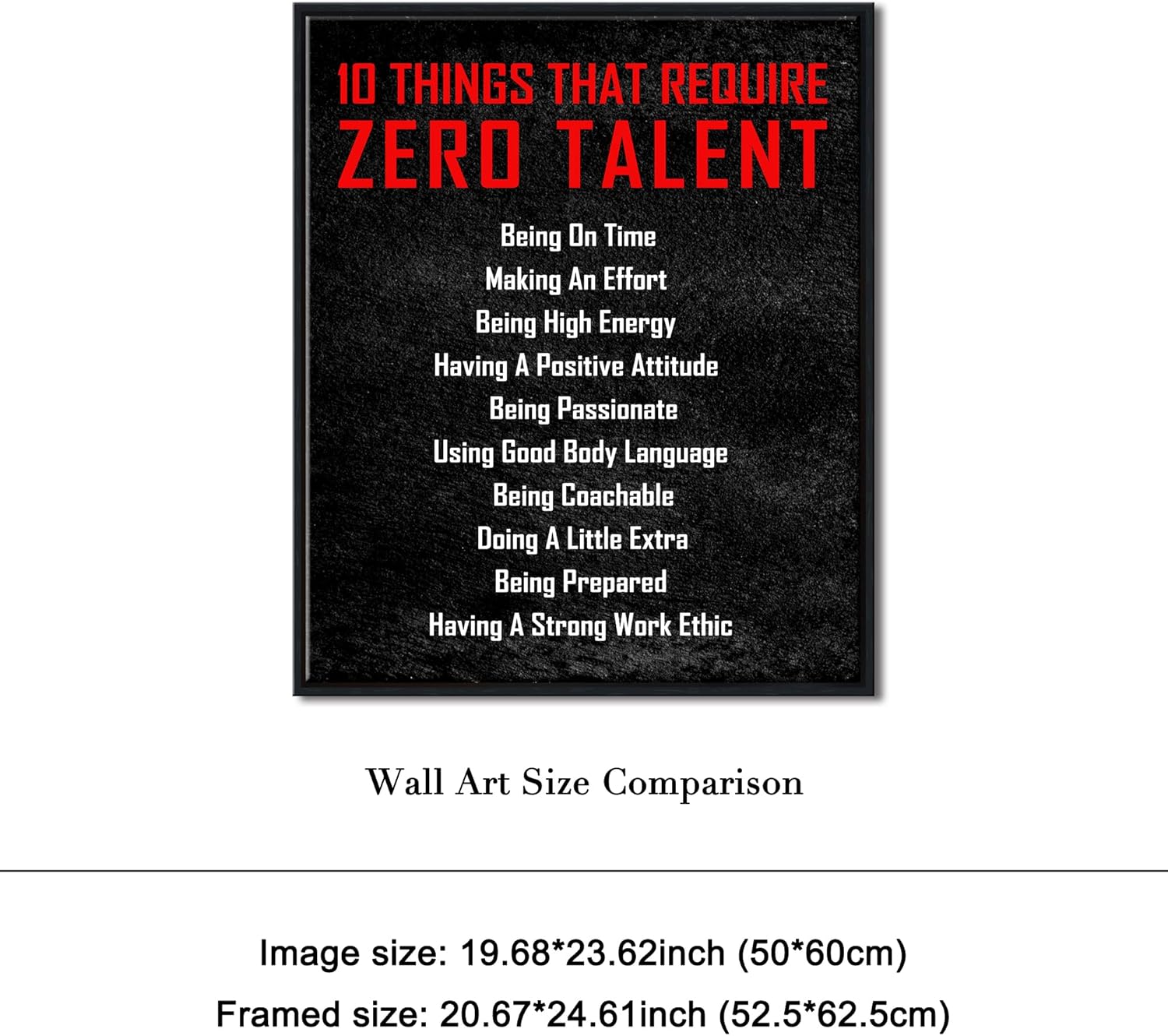 Pyradecor Large Black Framed Wall Art Inspirational Poster Canvas Prints Motivational 10 Things that Require Zero Talent Office Positive Quotes for Classroom Decorations