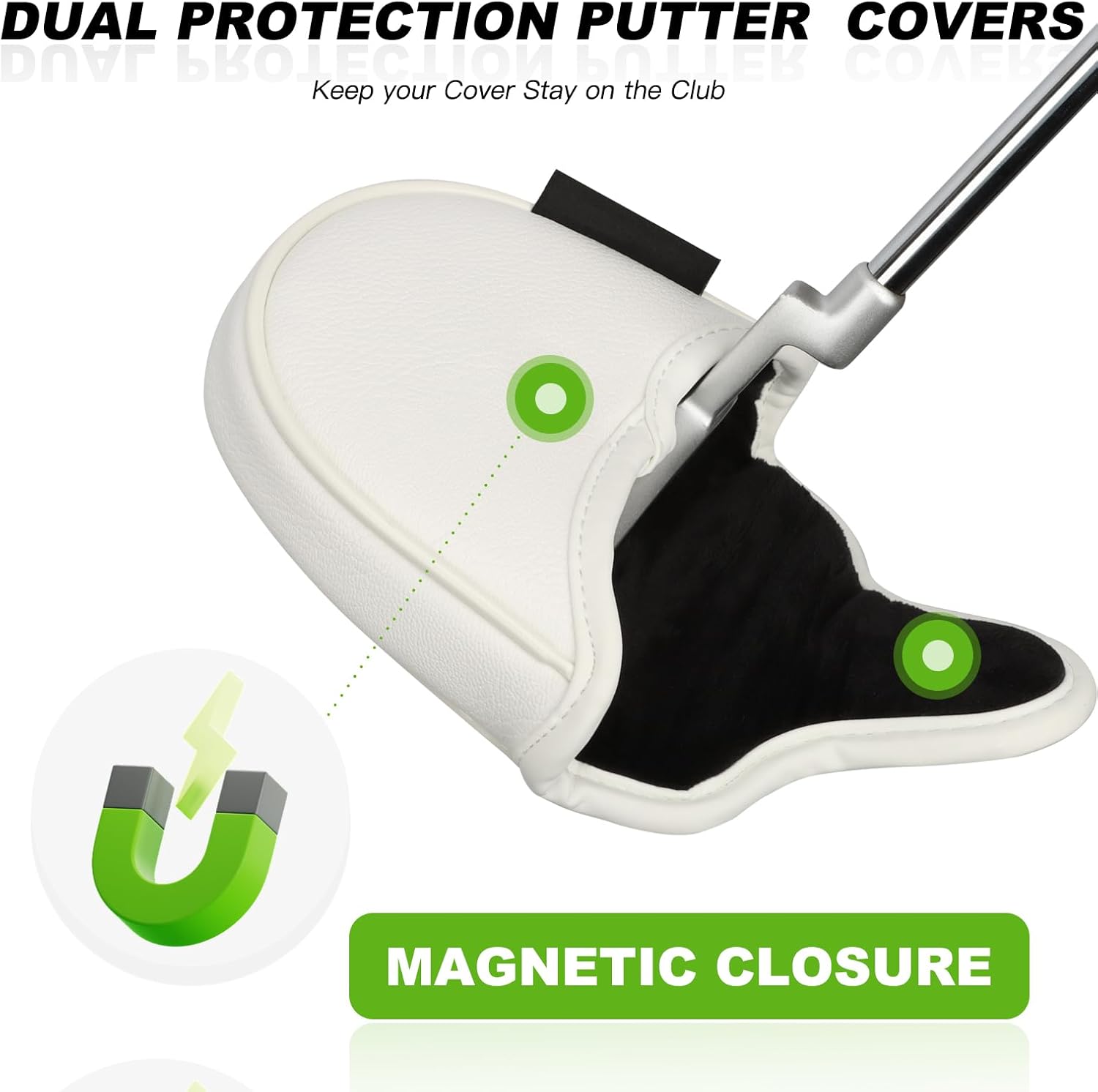 - Strong Magnetic Closure: The mallet putter cover has magnetic closures.They keep the covers snug on your clubs. Easy to remove between shots.Tight fit, hard to lose.