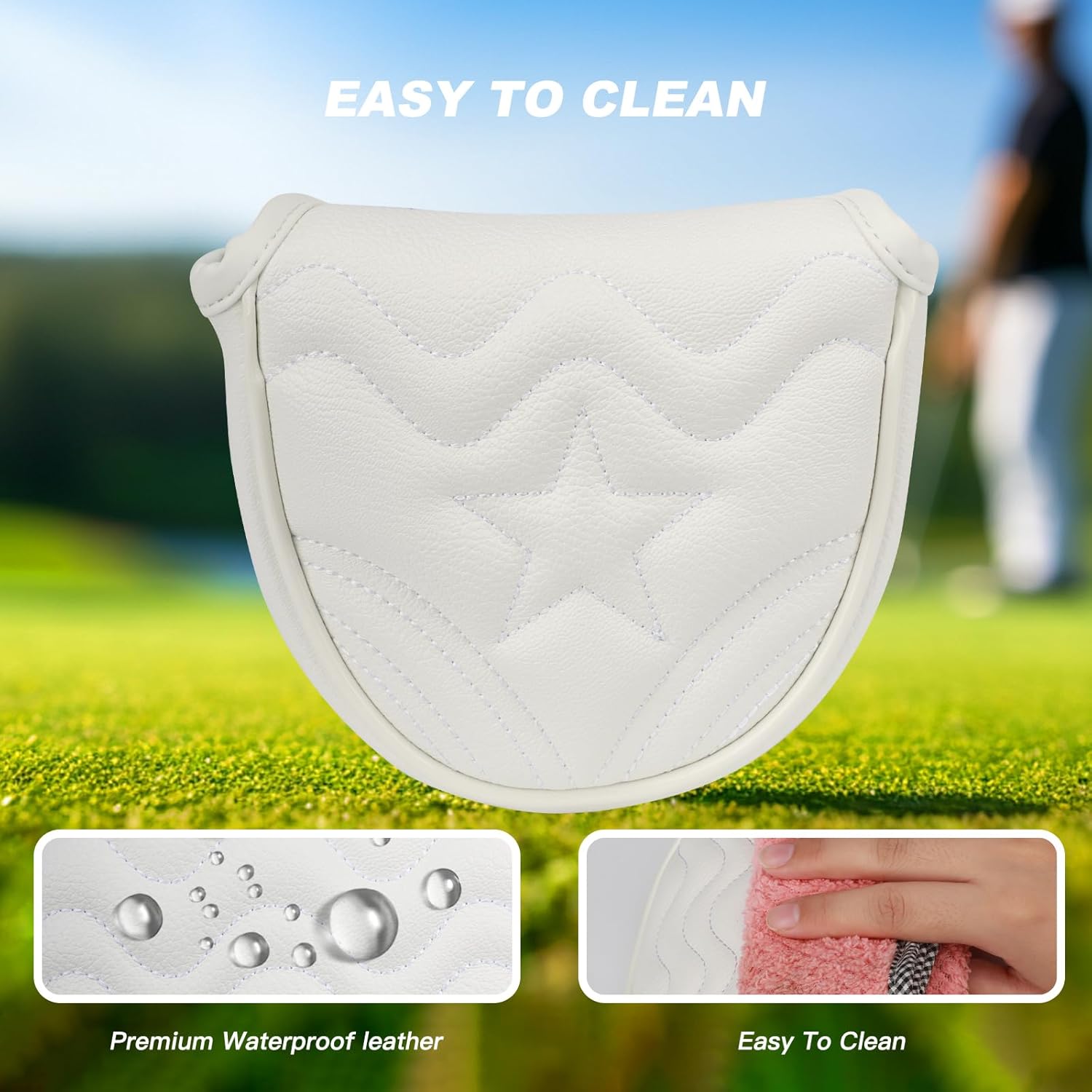 - Waterproof PU Leather: Mallet putter cover made of PU leather, exquisite craftsmanship, waterproof surface helping your club cover stay dry.