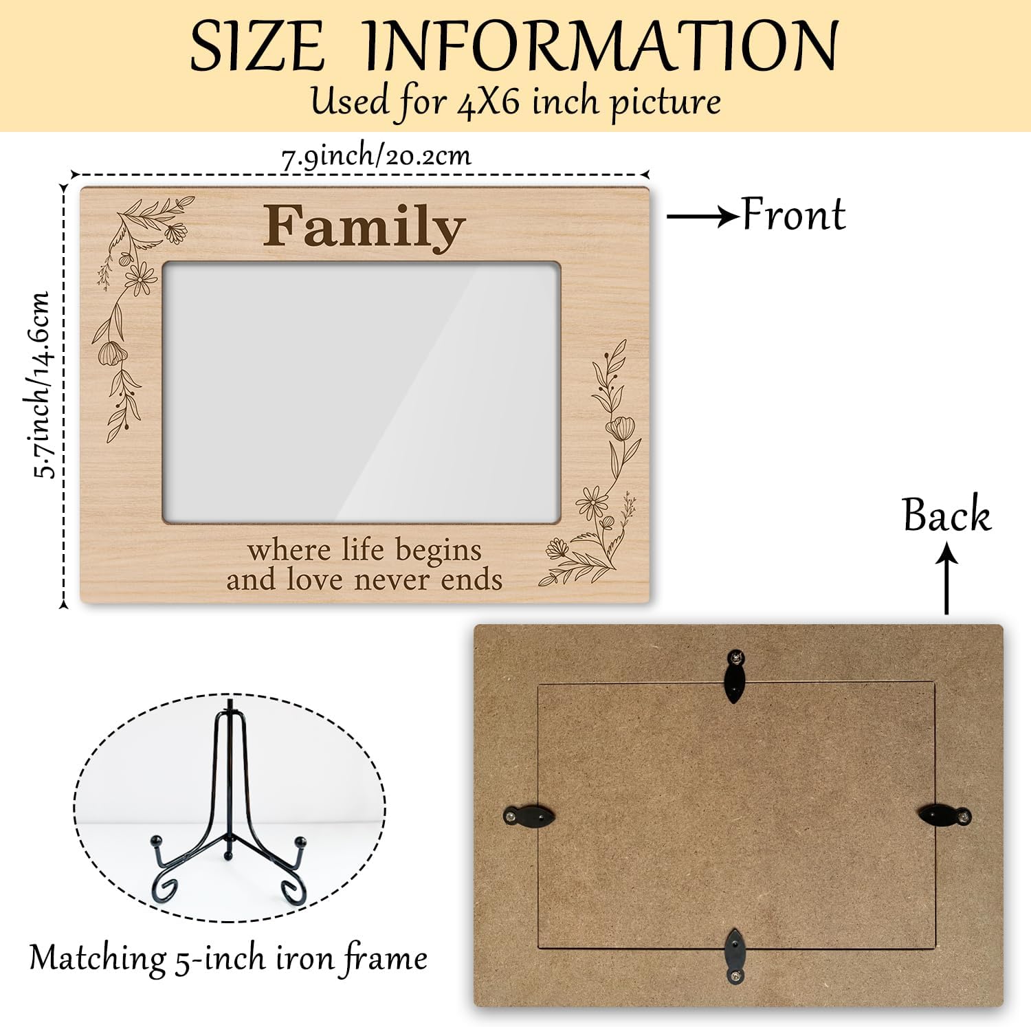 - Detail Size: The size of this photo frame is 7.9" x 5.7", can hold a 4" x 6" photo.