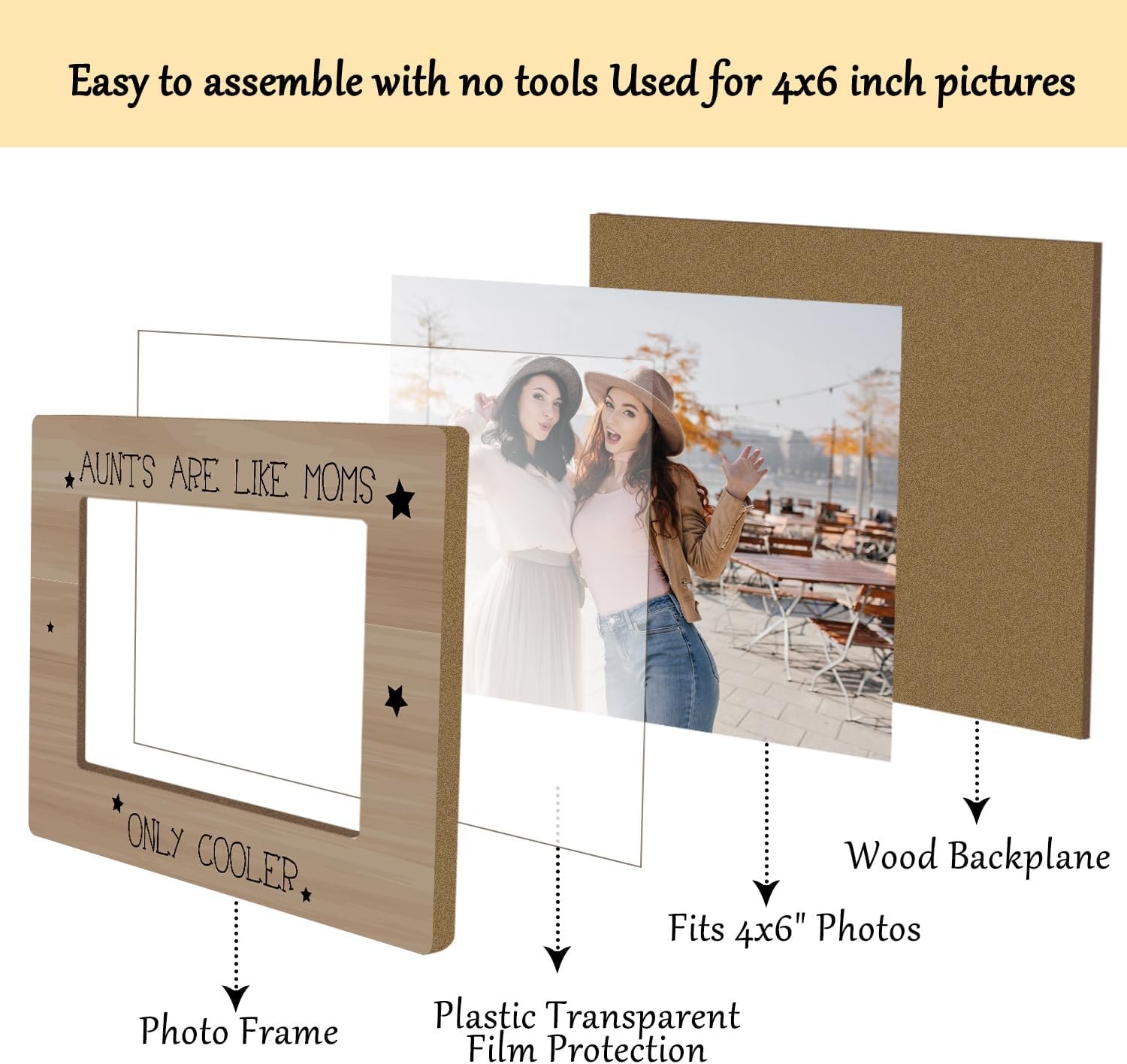 Aunt Picture Frame, Wooden Photo Frame with Stand, Auntie Gifts Birthday Gifts for Women Aunt Auntie Mom Sister, Home Office Desk Decor Photo Frame Tabletop Display -xk27