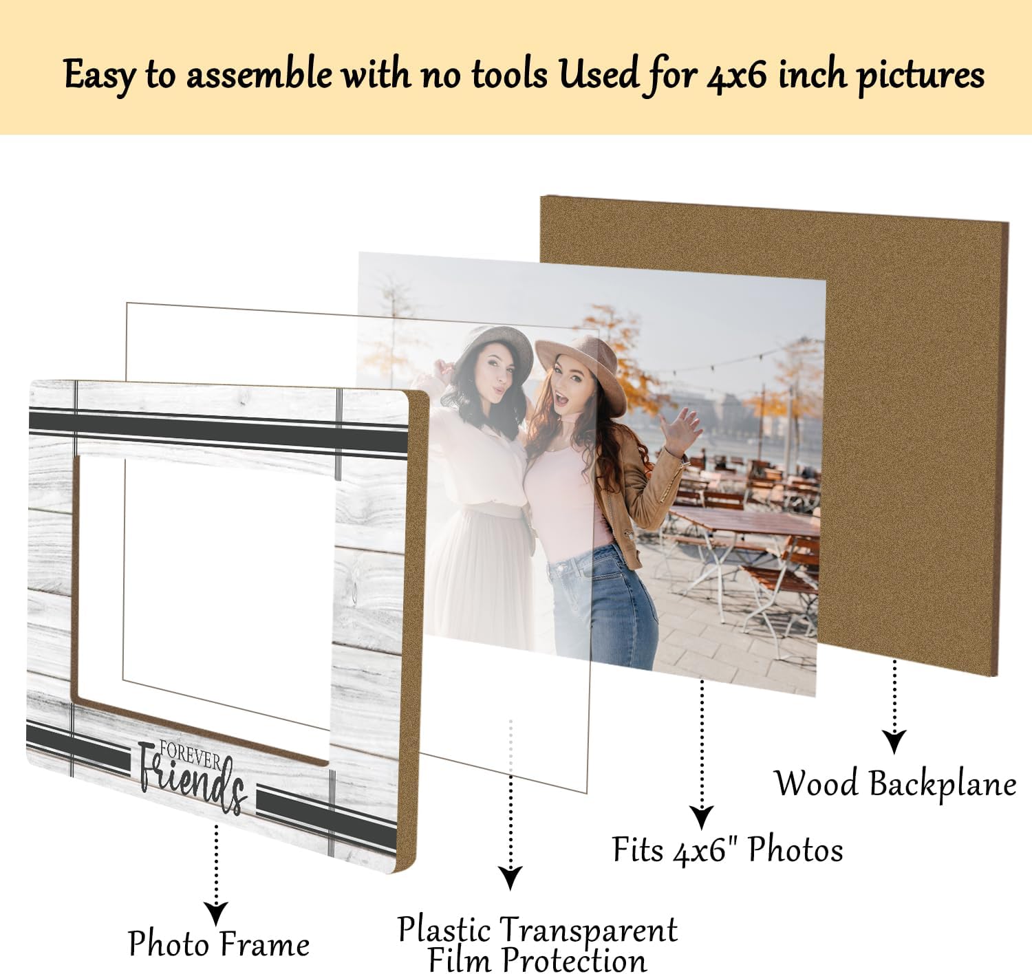 Friends Picture Frame, Wooden Photo Frame with Stand, Friendship Gifts Birthday Gifts for Women Men Friend Sister Bestie, Home Office Desk Decor Photo Frame Tabletop Display -xk25
