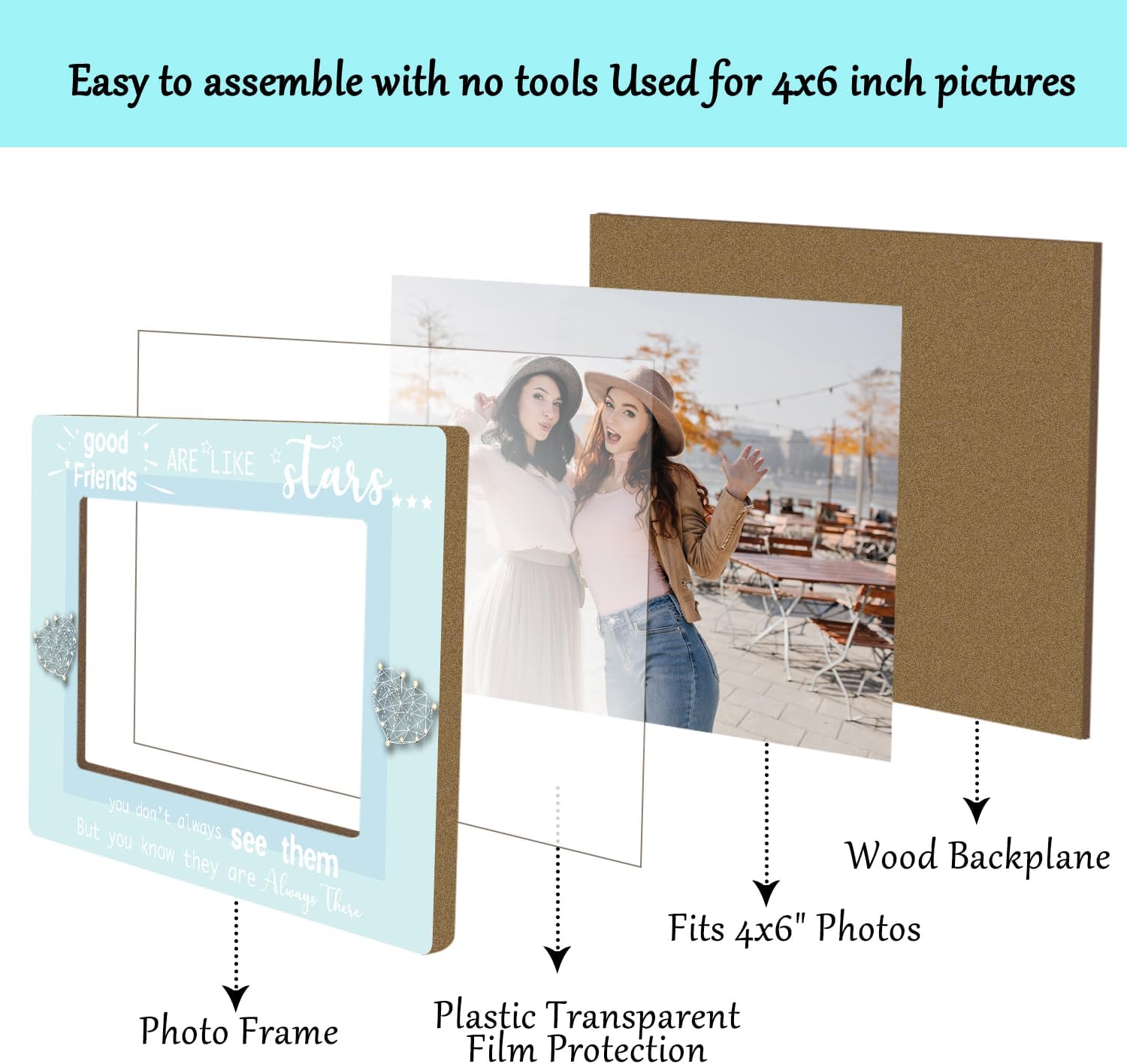 Friends Picture Frame, Wooden Photo Frame with Stand, Friendship Gifts Birthday Gifts for Women Men Sister Bestie Friend, Home Office Desk Decor Photo Frame Tabletop Display -xk26