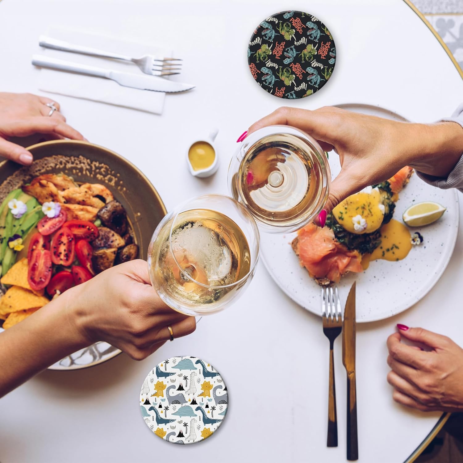Drink Coasters Set of 6 with Holder, Dinosaur Absorbent Ceramic Drink Coaster for Tabletop Protection,Suitable for Kinds of Cups,Drinks Coasters for Home Office Decoration(4 Inches)