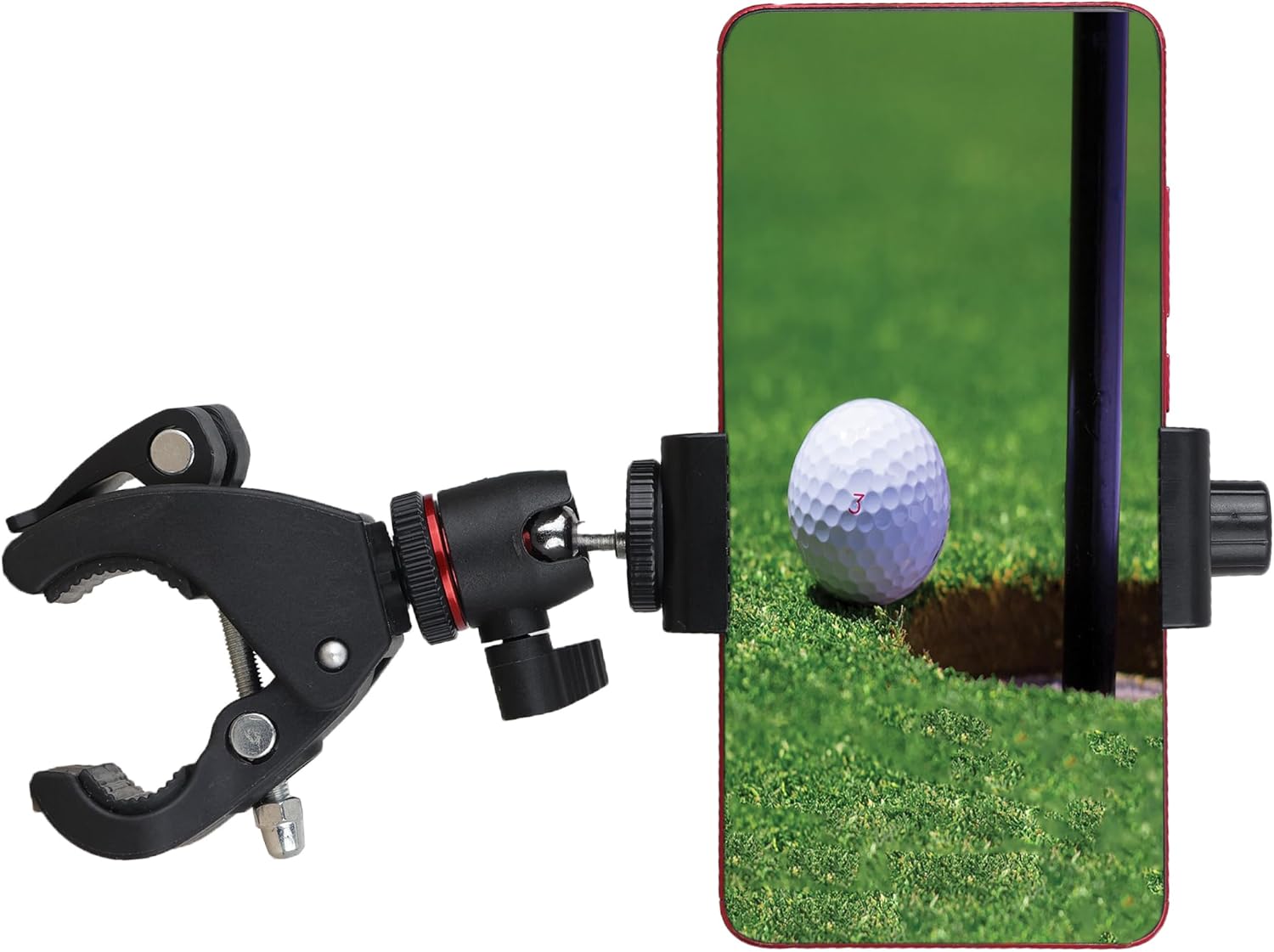 - This phone mount is perfect for golf cart, Bike, Stroller, Mic stand, Shopping Cart, etc. It can clamp on anywhere, just enjoy the convenience of this phone holder.