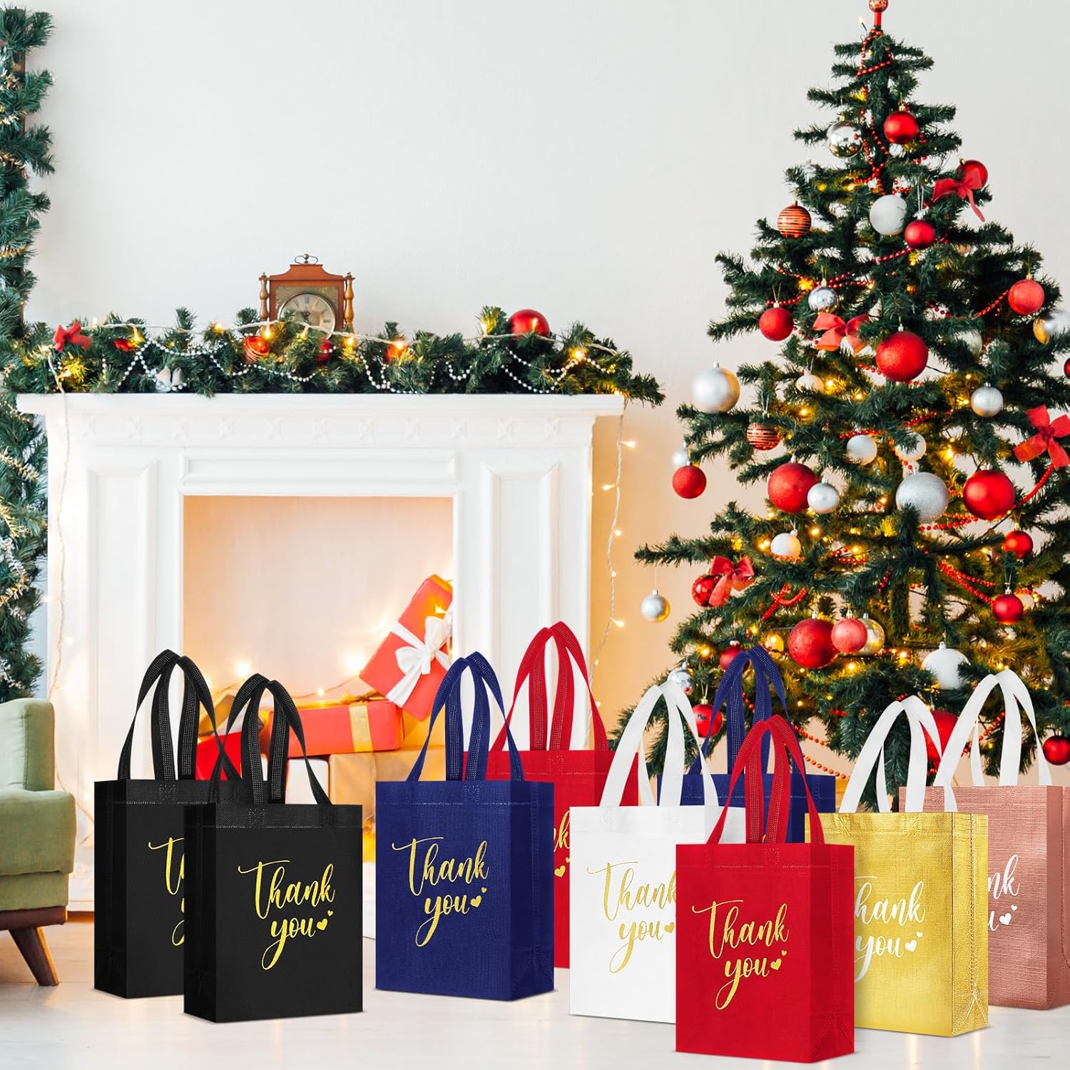 - Applicable for Parties and Daily Life: these thank you tote non woven bags are ideal for weddings and bridal showers, also suitable for birthday parties, baby showers, Thanksgiving, graduation ceremonies, afternoon tea parties, business banquets and other occasions; There is a large enough capacity to hold gifts, jewelry, lipstick, souvenirs, toys, clothes, snacks, candy and more, providing you and your guests with a wonderful party atmosphere