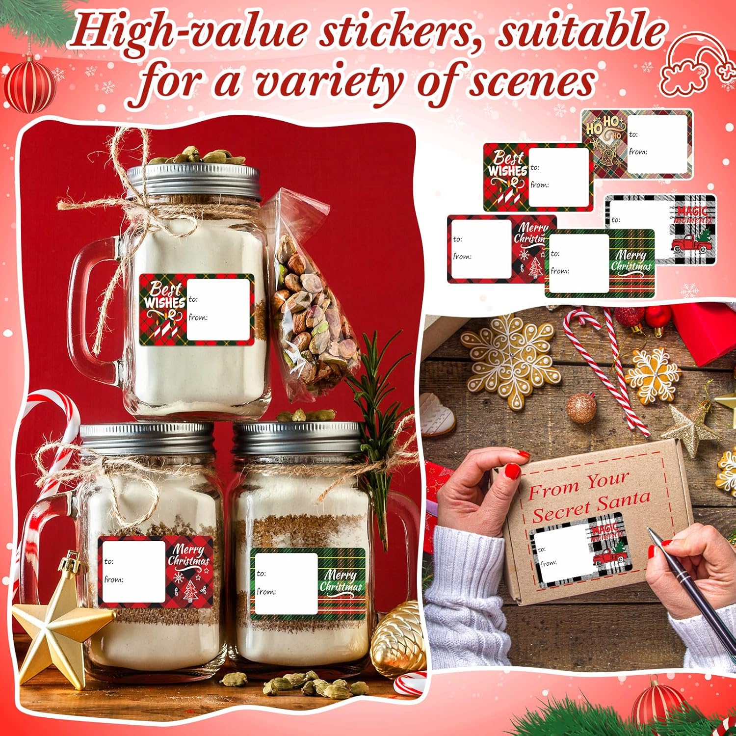 Outus 500 Pieces Christmas Tags Self Adhesive Gift Tags for Xmas Presents Christmas Name Labels Stickers for Wrapping Paper Festival Birthday Holiday Decor(Checkered Style,2.76 x 1.57 Inch)