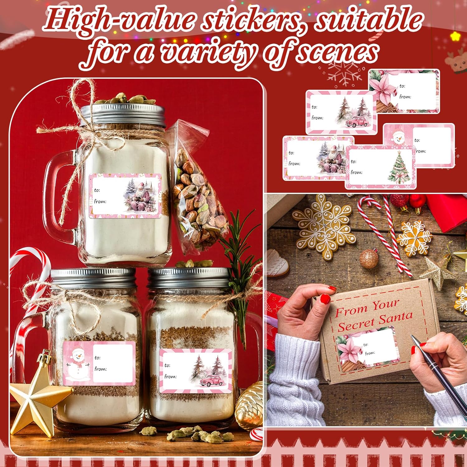 - Good Christmas accessories: classic Christmas themed images design helps to add festive atmosphere, these traditional festive sticker labels are suitable for friends and family, kids and adults; Also a good cute name tag on book, notebook and desk, etc