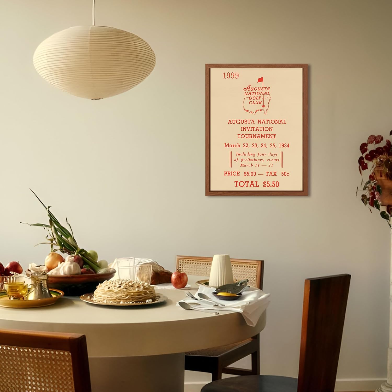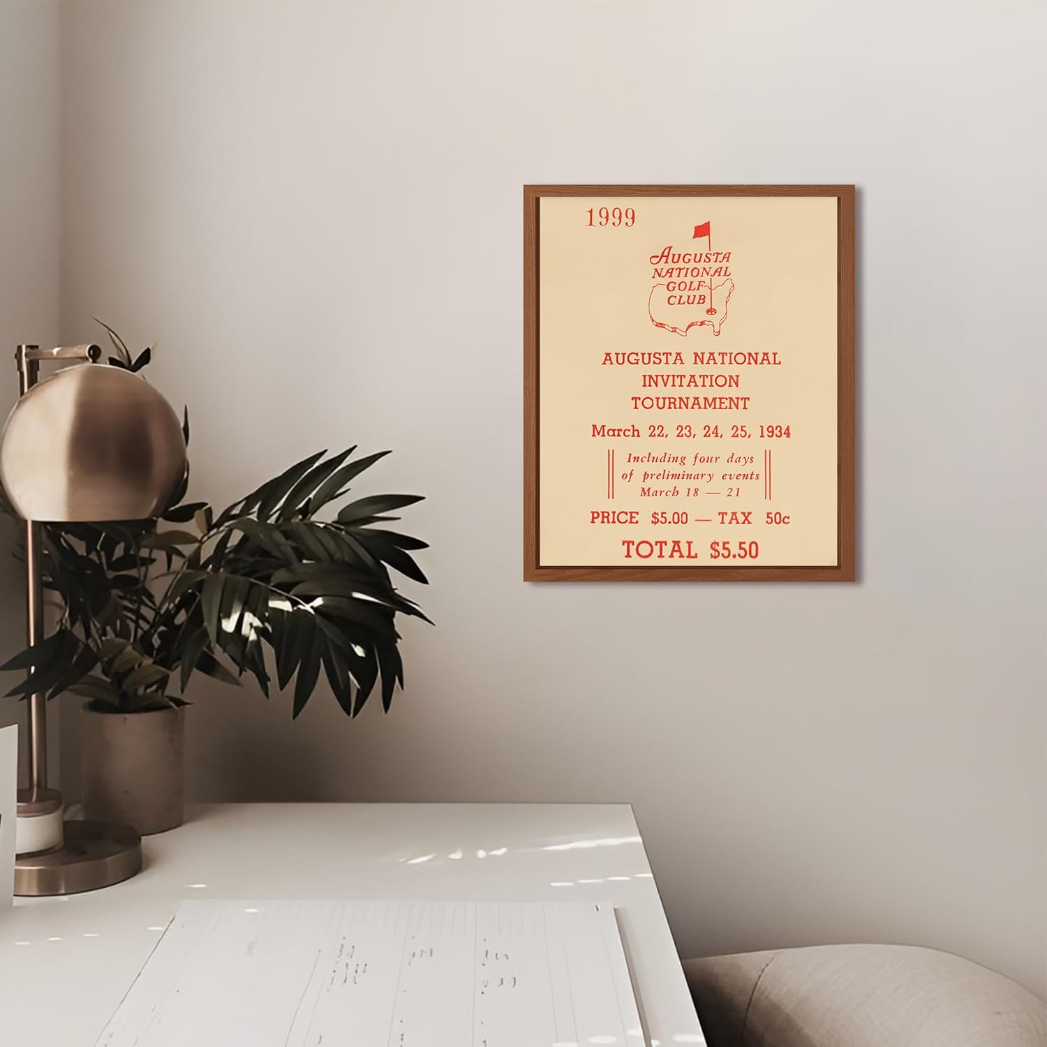 Framed Vintage Golf Wall Decor, Masters Golf Augusta National 1934 Tournament Wall Art Canvas Poster for Living Room Bedroom Office Decorations (8" x 10")