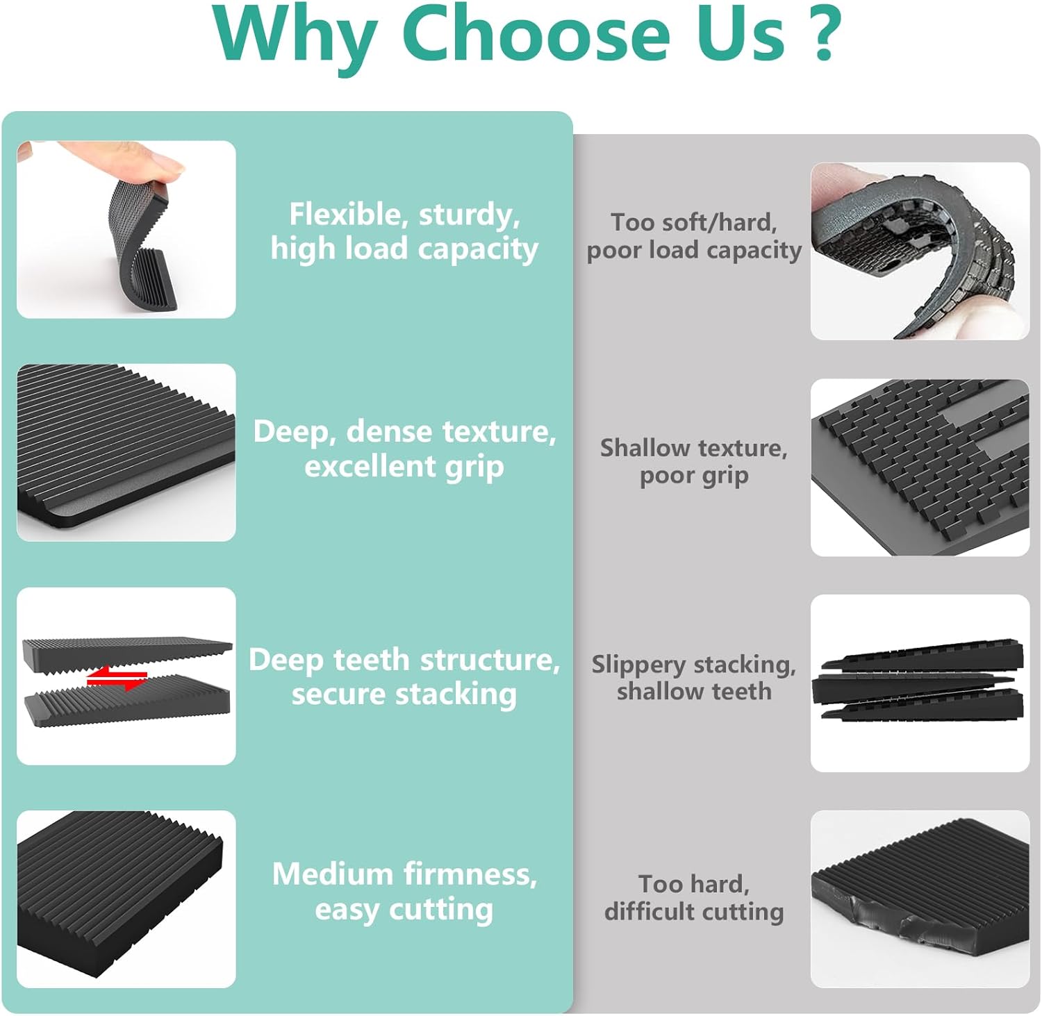 - Easy Installation | Say goodbye to complicated installation. Our kit offers hassle-free solutions – no tools required. Flexible rubber spacers fit in small spaces to absorb vibrations. simply insert the shims or levelers where needed, and enjoy a stable and secure environment