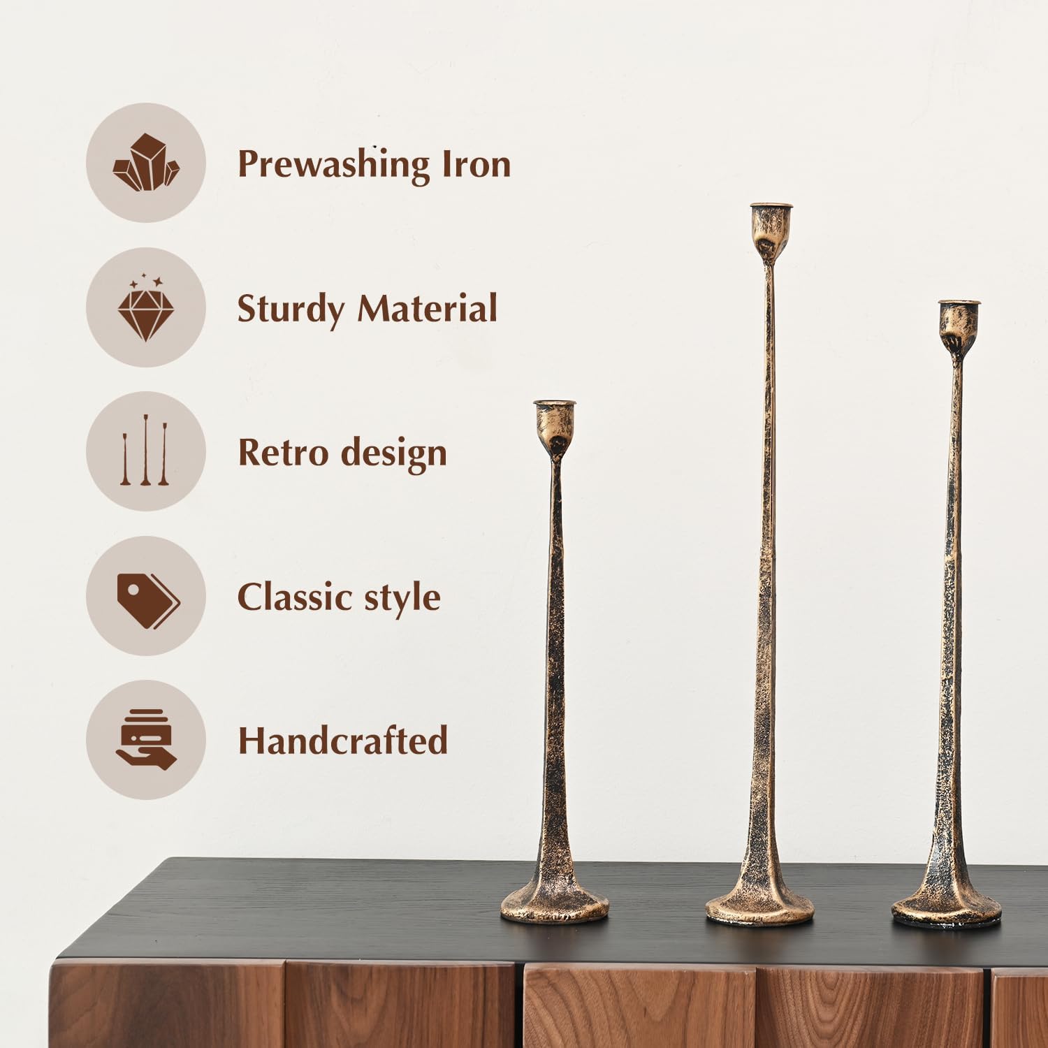 Iron Antique Gold Candlestick Holders, Set of 3 Candle Stick Holders,Fits 3/4 inch Thick Candle&Led Candles, Vintage Modern Decorative Centerpiece for Dining Table Centerpiece, Wedding, Party Decor