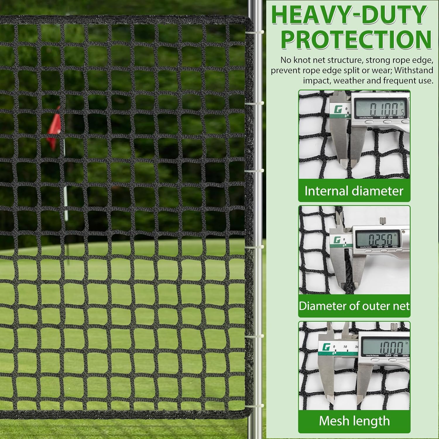- 【Easy Installed Nets】Set up and tear down in minutes; Our nets are light and portable for trips to the park, parties, and impromptu gatherings; Hang from trees, poles, hooks, and Works great as a barrier for backyard or outdoors; Great for Backyard Golf, Hockey, Baseball, Softball and Soccer Practice