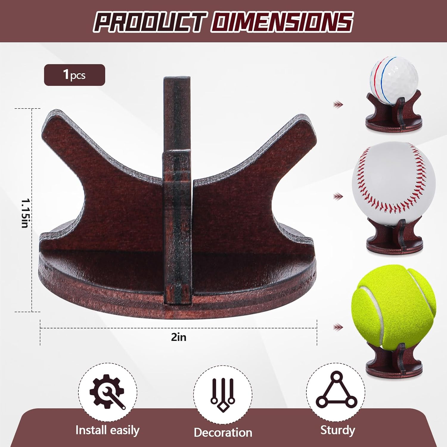 - Suitable Size: the wooden small ball display holder measures about 2 x 1.15 Inches; This compact sized small ball holder neatly showcases your cherished balls without occupying too much space, which suitable fits into corner of your room, creating an interesting display without cluttering your area